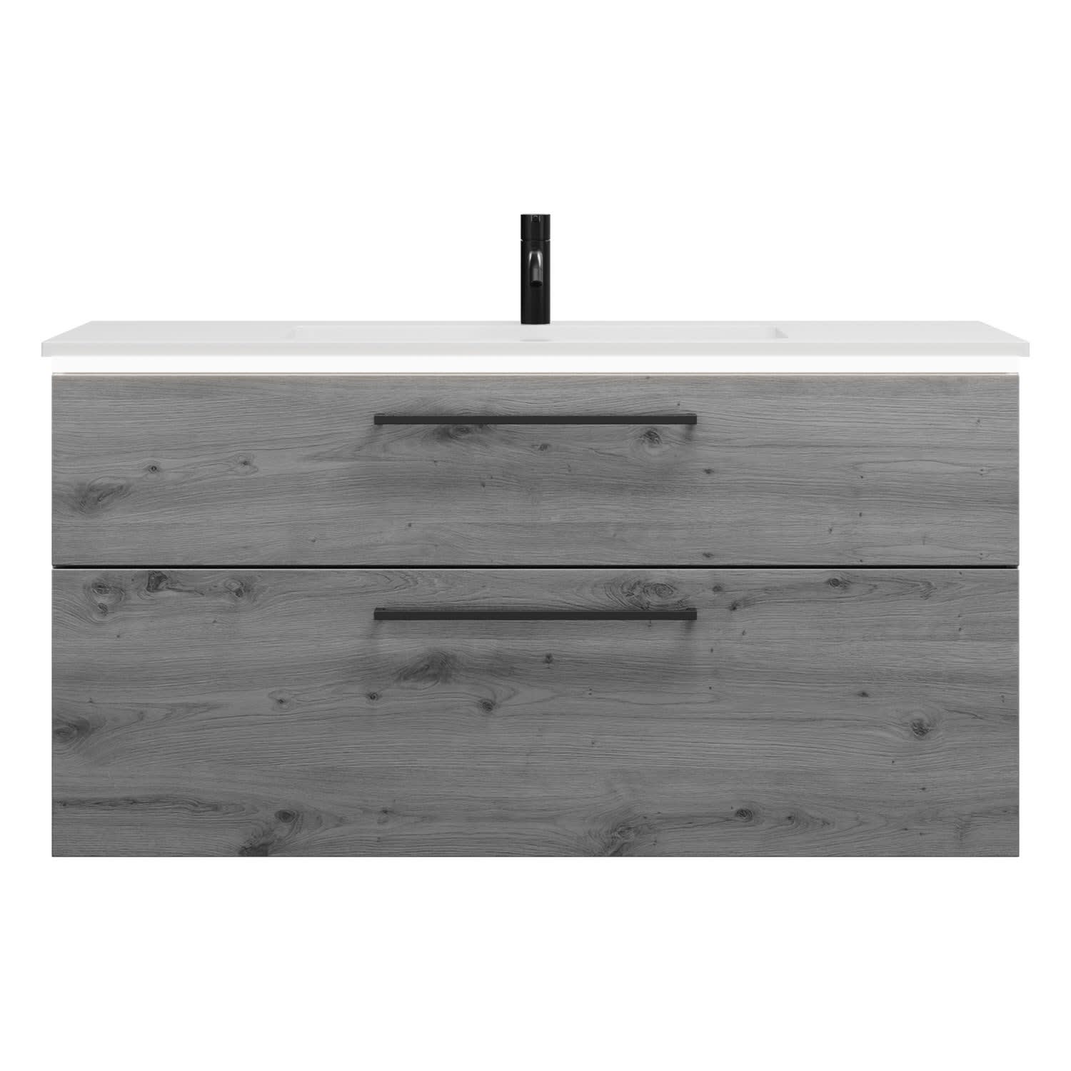 - 1 Schublade oben, 35 cm tief, mit Siphonausschnitt und Inneneinteilung