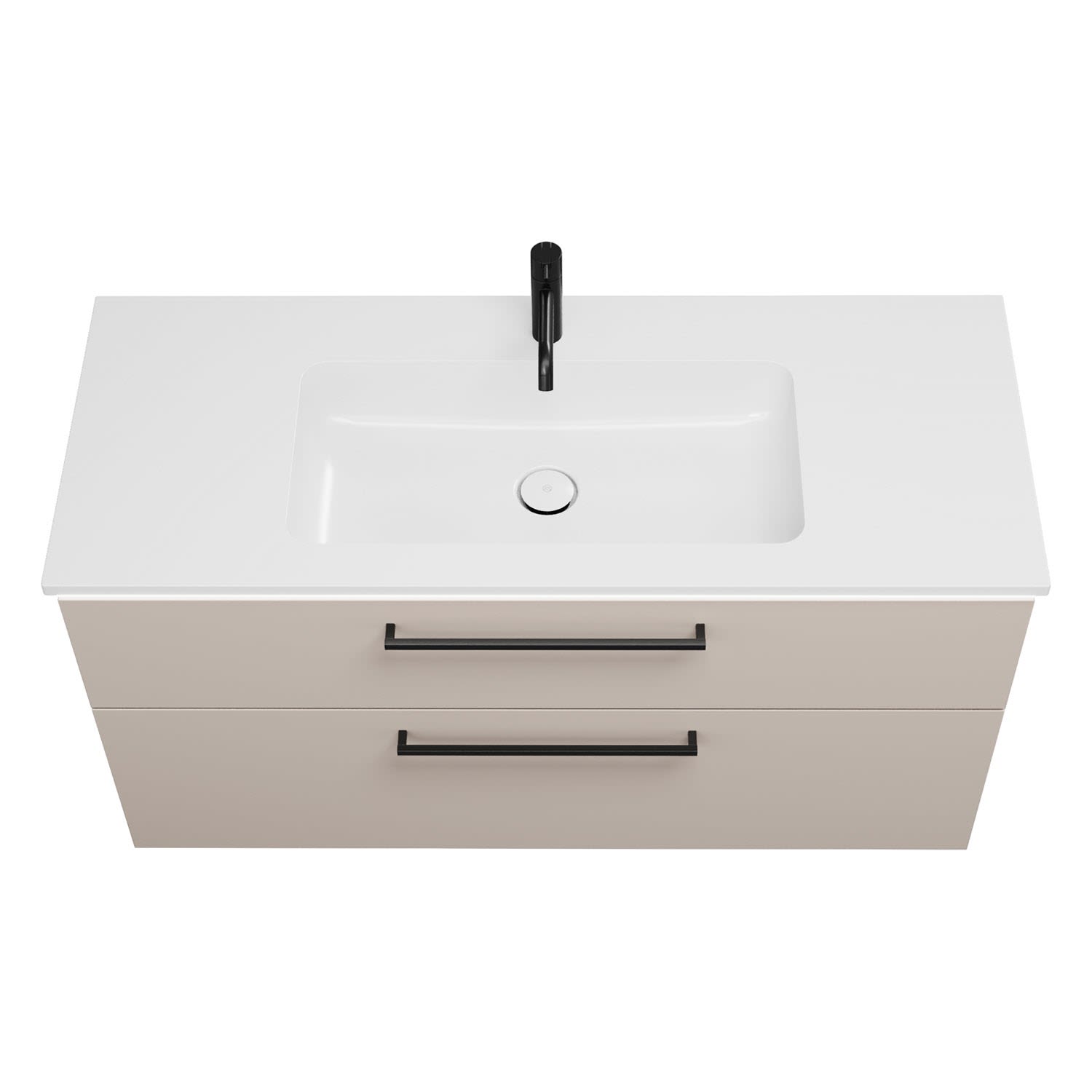 - 1 Schublade oben, 35 cm tief, mit Siphonausschnitt und Inneneinteilung