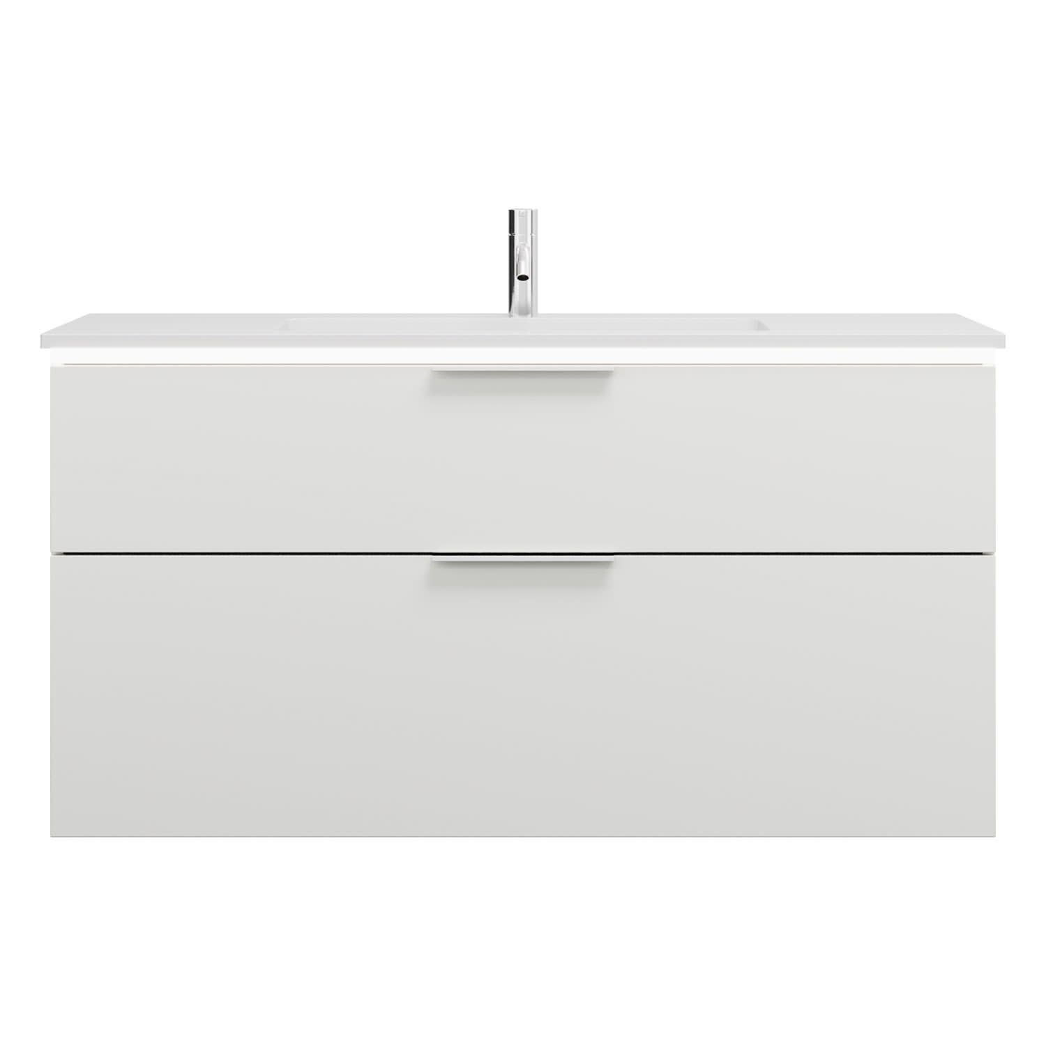 - 1 Schublade oben, 35 cm tief, mit Siphonausschnitt und Inneneinteilung