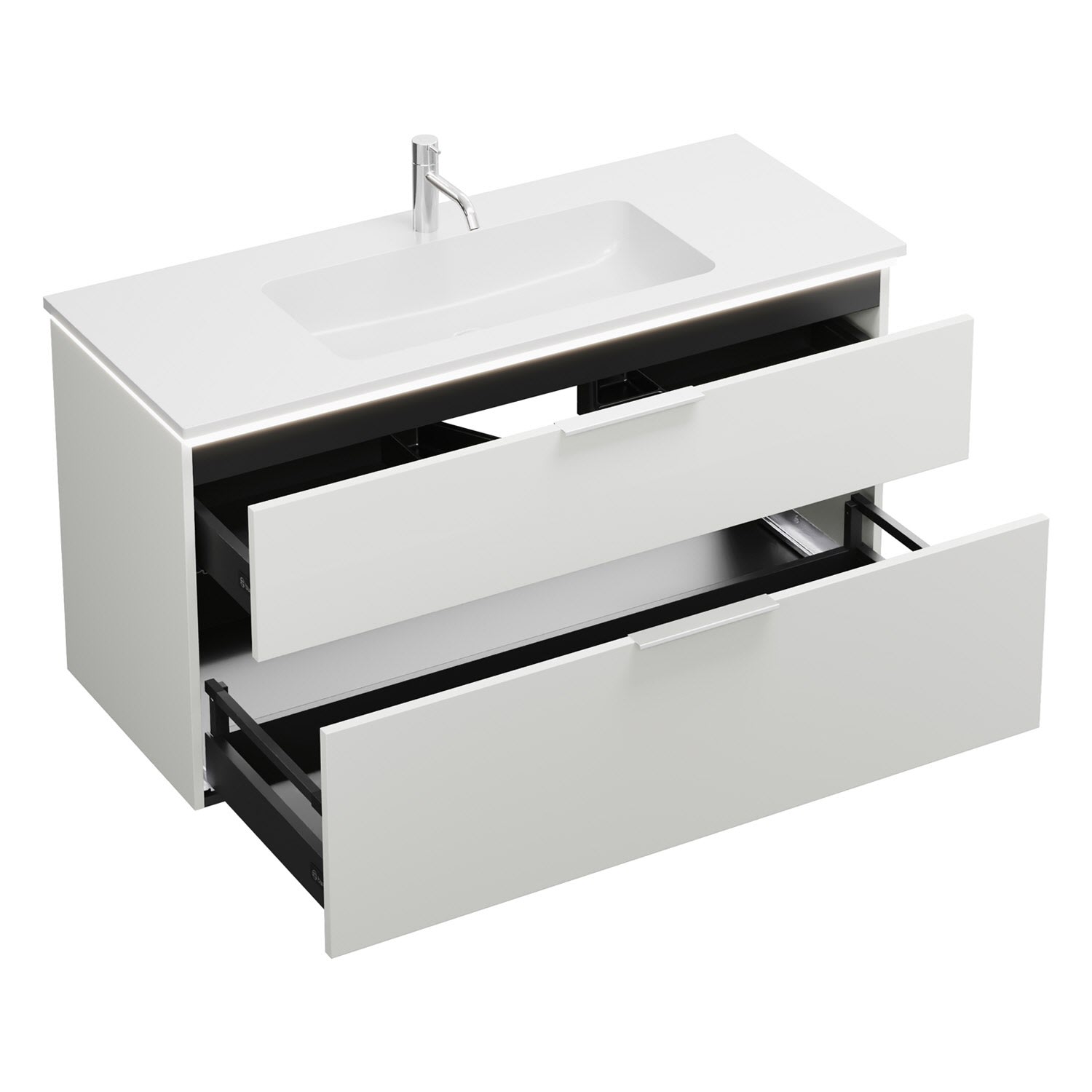 burgbad Eqio Waschtischkombination mit Mineralguss-Waschtisch und LED-Beleuchtung, 122 cm, mit Griff G0146