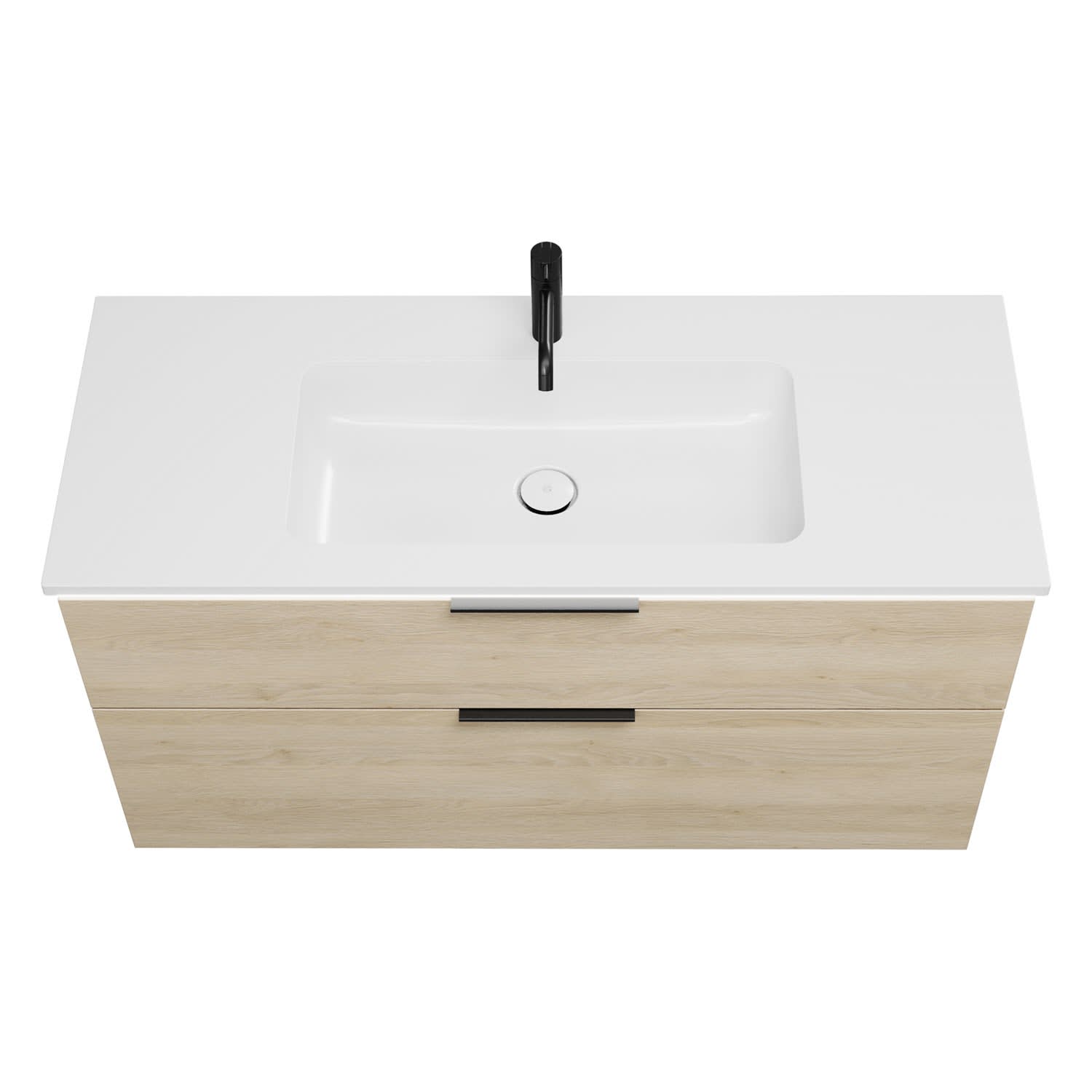 - 1 Schublade oben, 35 cm tief, mit Siphonausschnitt und Inneneinteilung