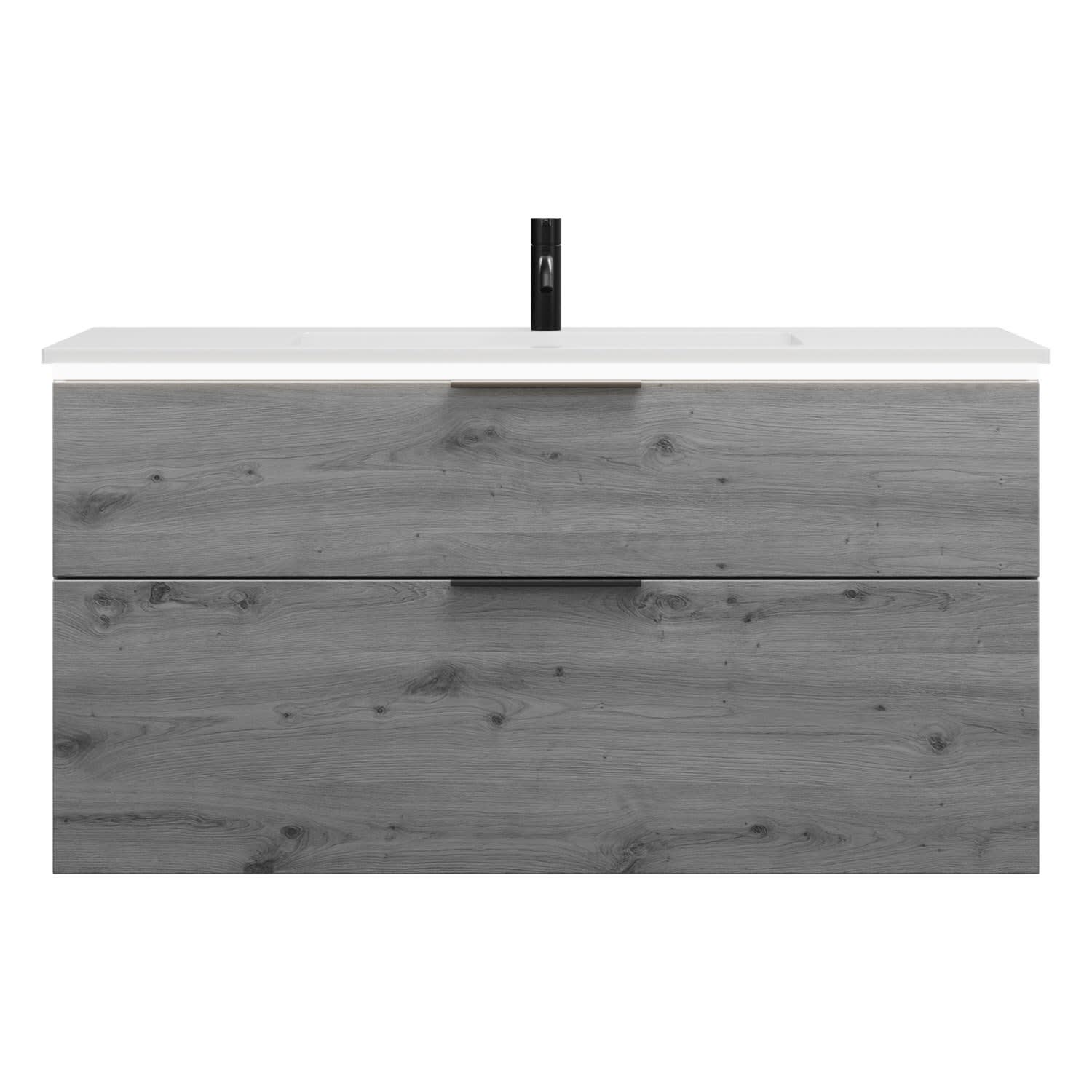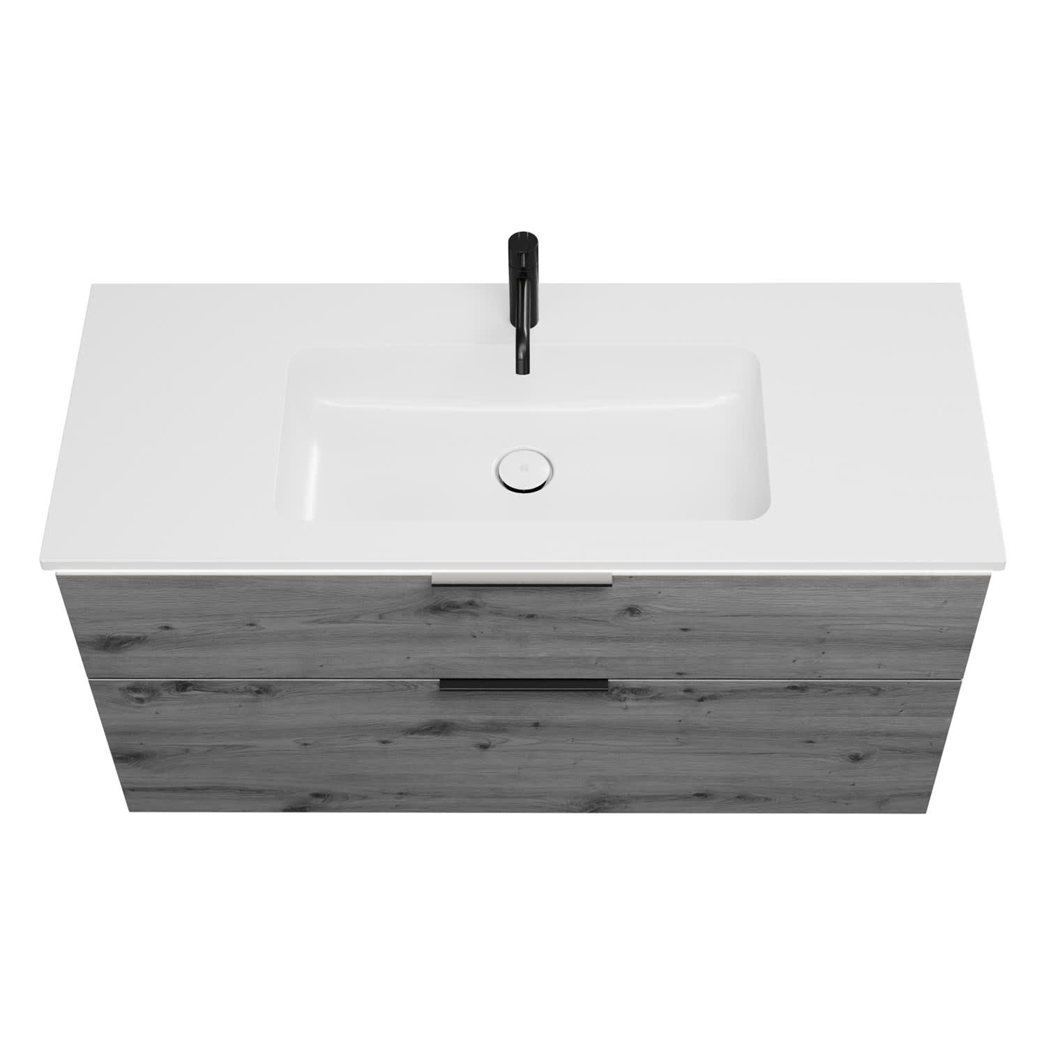 - 1 Schublade oben, 35 cm tief, mit Siphonausschnitt und Inneneinteilung