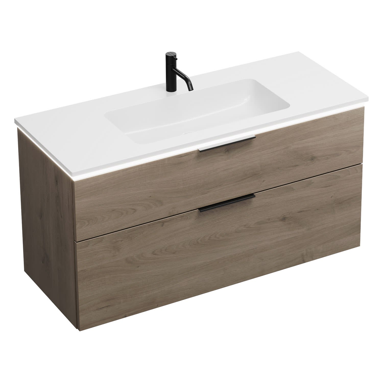 burgbad Eqio Waschtischkombination mit Mineralguss-Waschtisch und LED-Beleuchtung, 122 cm, mit Griff G0200