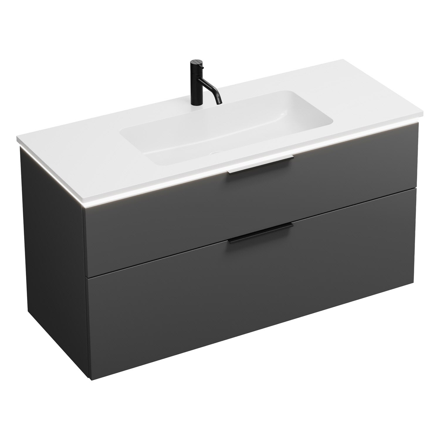 burgbad Eqio Waschtischkombination mit Mineralguss-Waschtisch und LED-Beleuchtung, 122 cm, mit Griff G0200