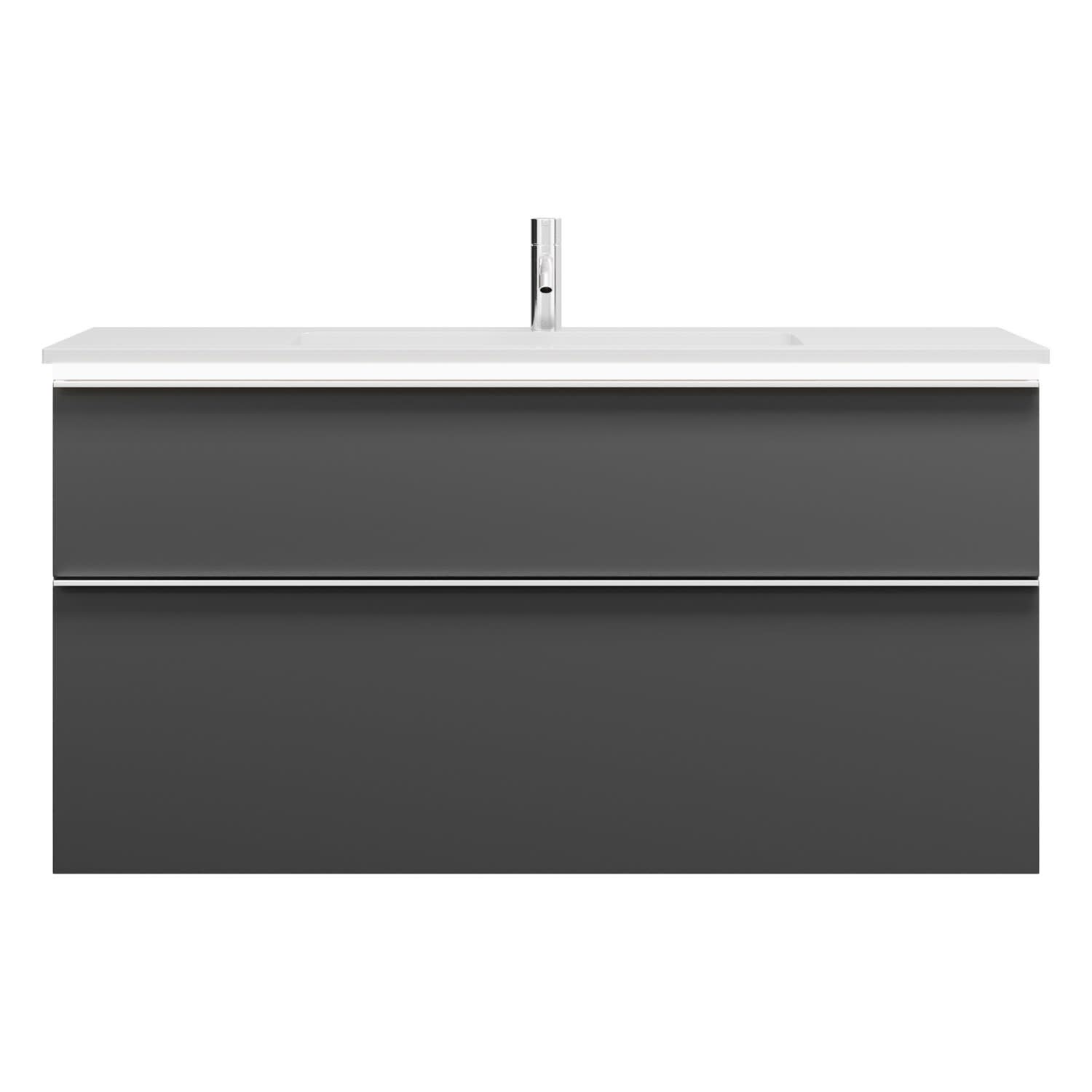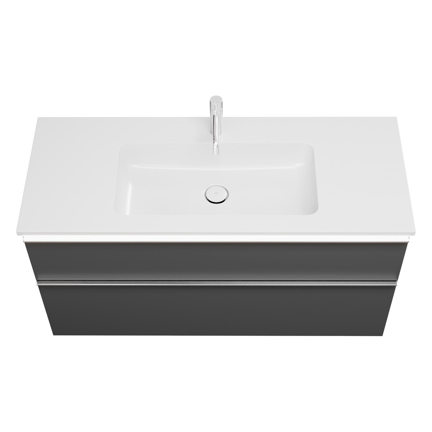 - 1 Schublade oben, 35 cm tief, mit Siphonausschnitt und Inneneinteilung