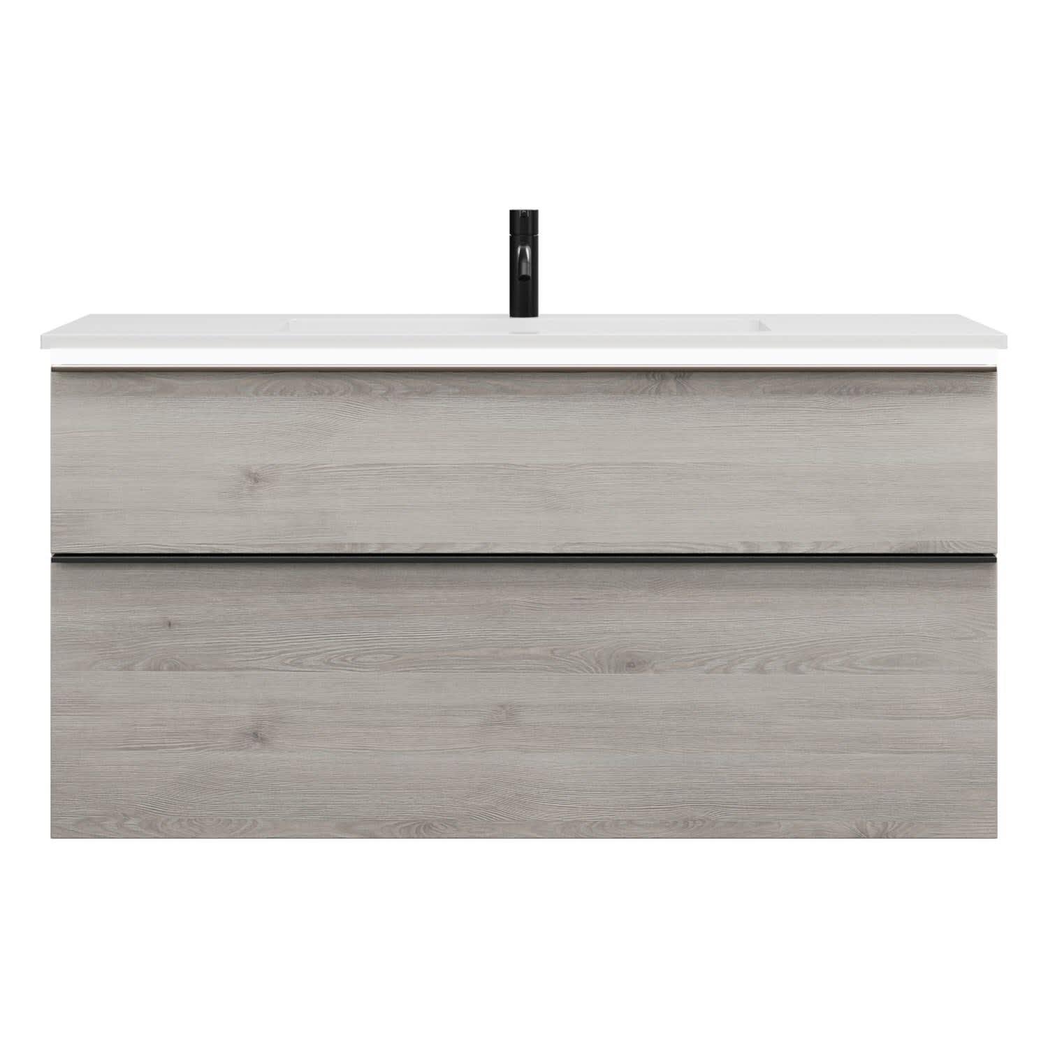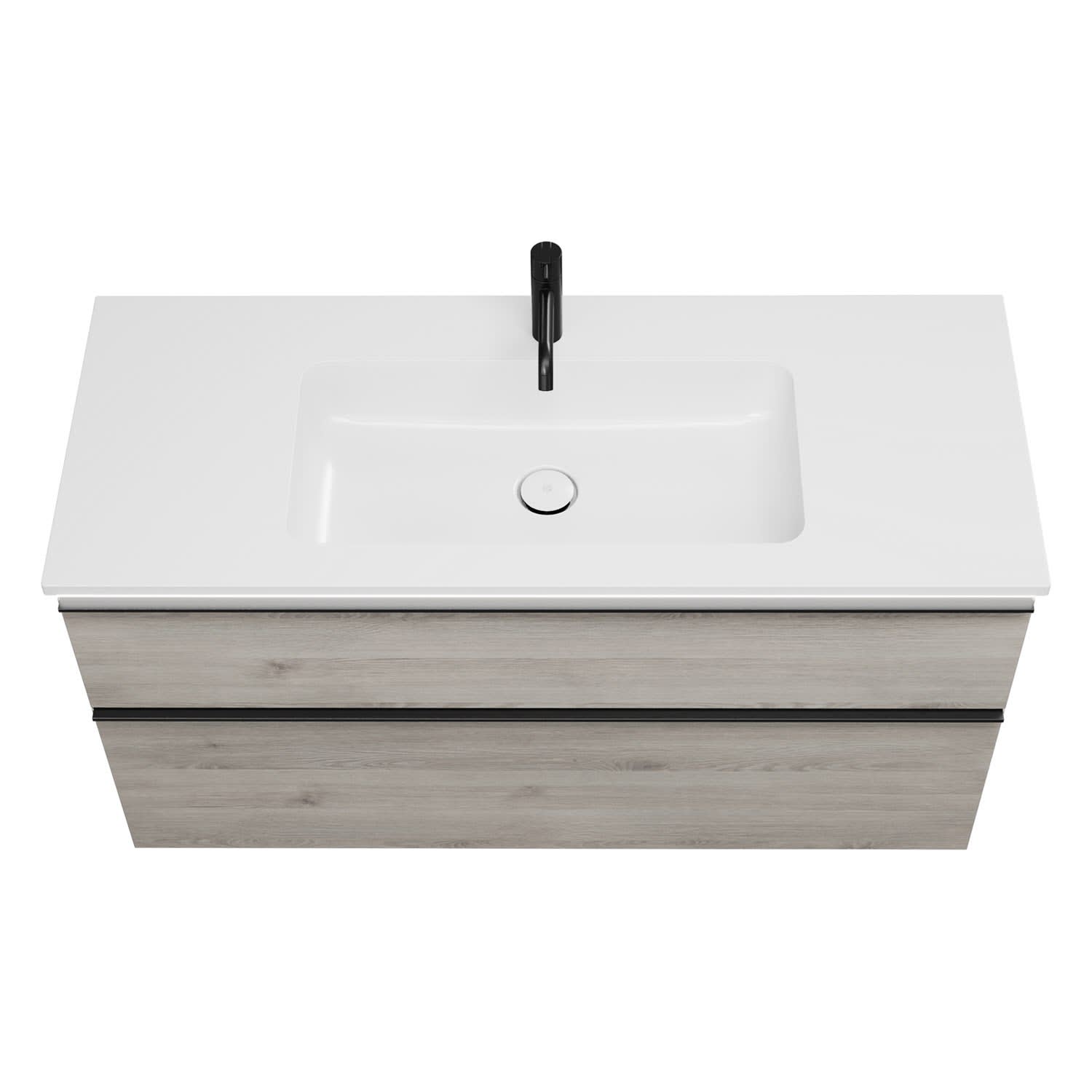 - 1 Schublade oben, 35 cm tief, mit Siphonausschnitt und Inneneinteilung