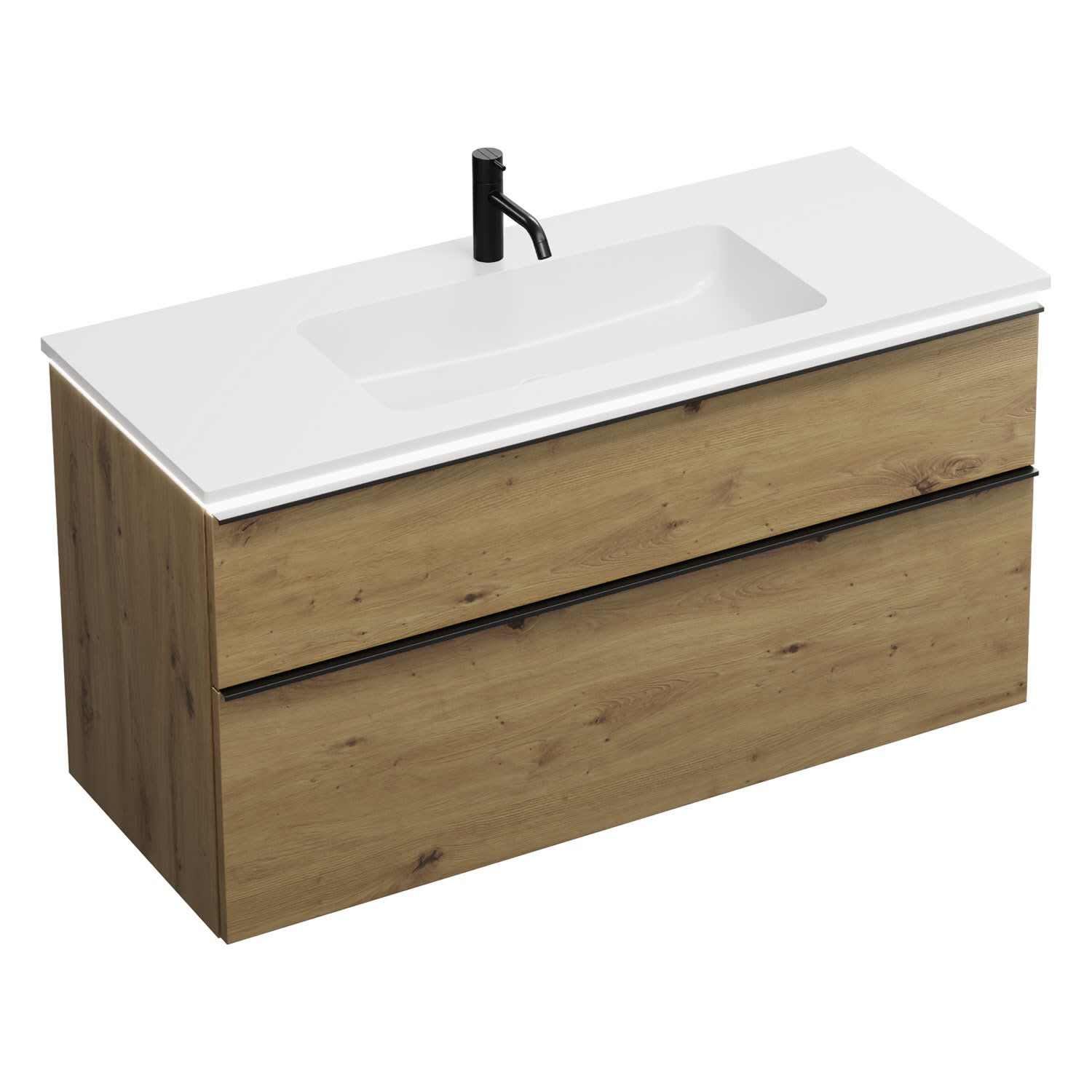 burgbad Eqio Waschtischkombination mit Mineralguss-Waschtisch und LED-Beleuchtung, 122 cm, mit Griffleiste G0252