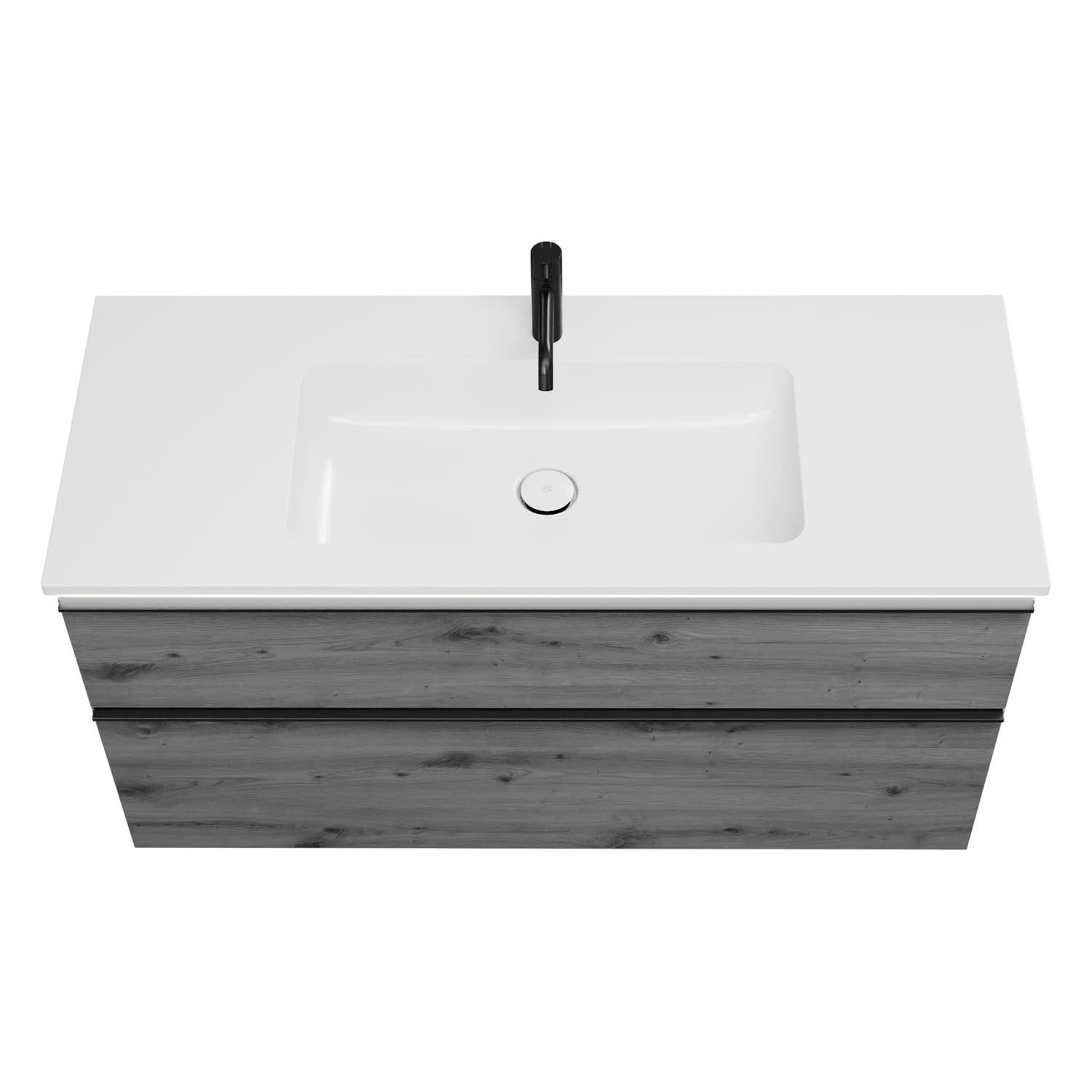 burgbad Eqio Waschtischkombination mit Mineralguss-Waschtisch und LED-Beleuchtung, 122 cm, mit Griffleiste G0252