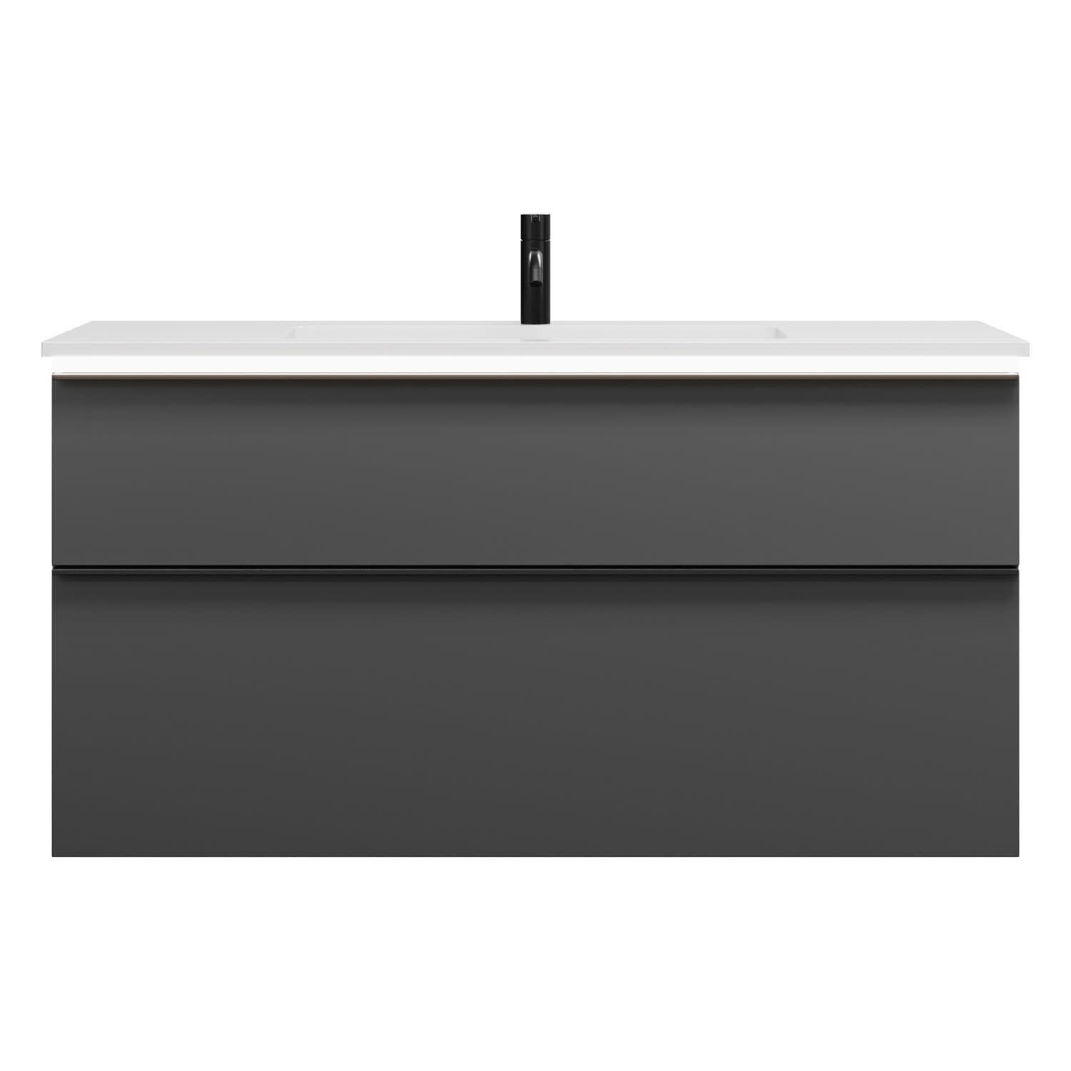 - 1 Schublade oben, 35 cm tief, mit Siphonausschnitt und Inneneinteilung