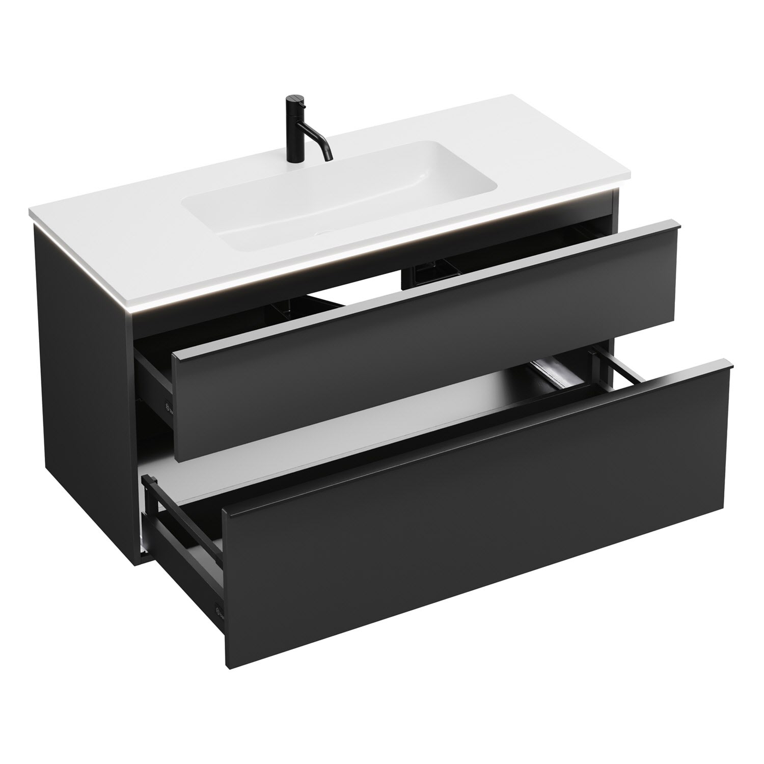 burgbad Eqio Waschtischkombination mit Mineralguss-Waschtisch und LED-Beleuchtung, 122 cm, mit Griffleiste G0252