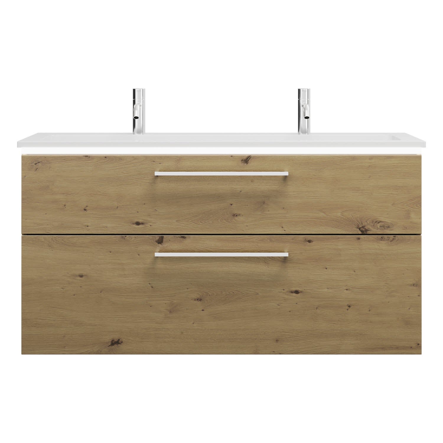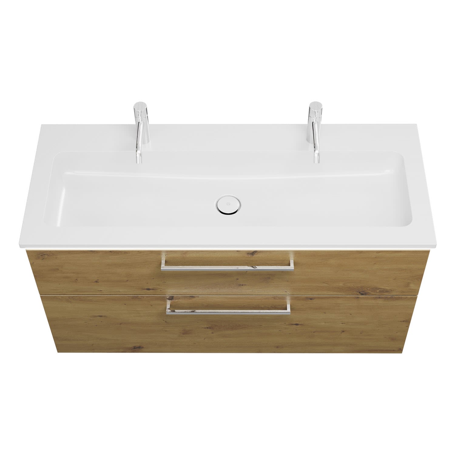 burgbad Eqio Waschtischkombination mit Mineralguss-Waschtisch und LED-Beleuchtung, 122 cm, mit Stangengriff P95