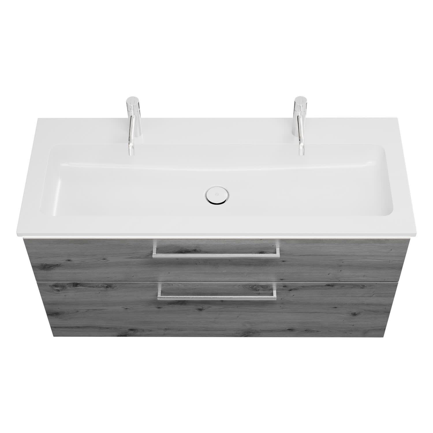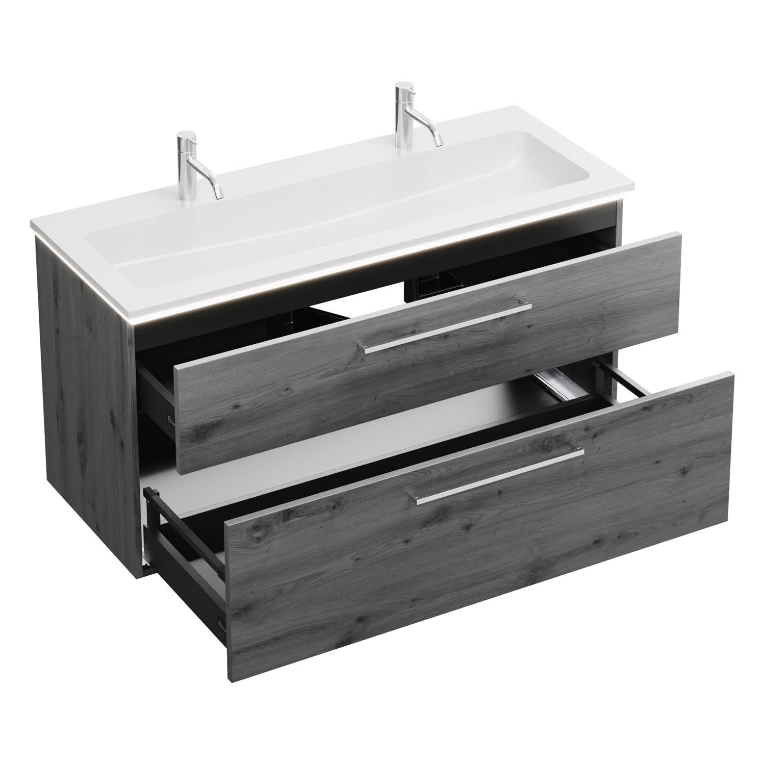 burgbad Eqio Waschtischkombination mit Mineralguss-Waschtisch und LED-Beleuchtung, 122 cm, mit Stangengriff P95