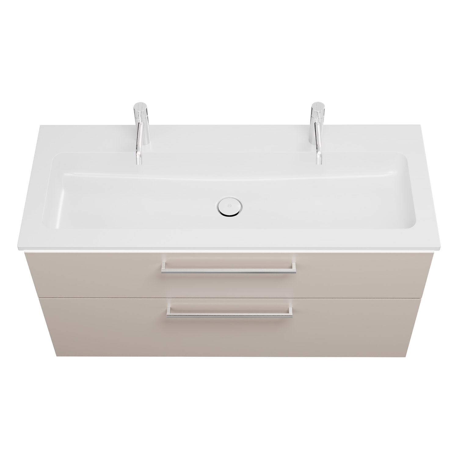 burgbad Eqio Waschtischkombination mit Mineralguss-Waschtisch und LED-Beleuchtung, 122 cm, mit Stangengriff P95