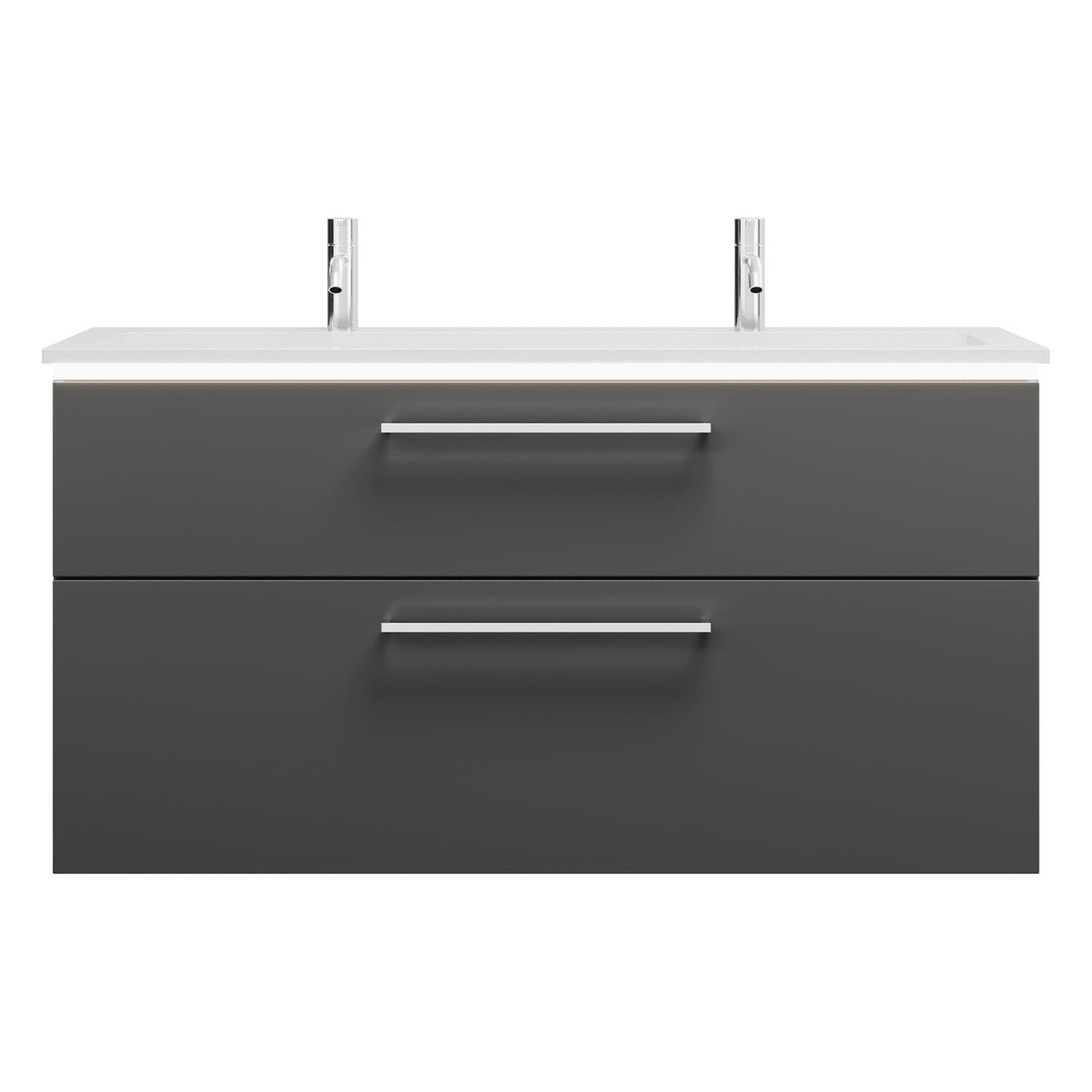burgbad Eqio Waschtischkombination mit Mineralguss-Waschtisch und LED-Beleuchtung, 122 cm, mit Stangengriff P95