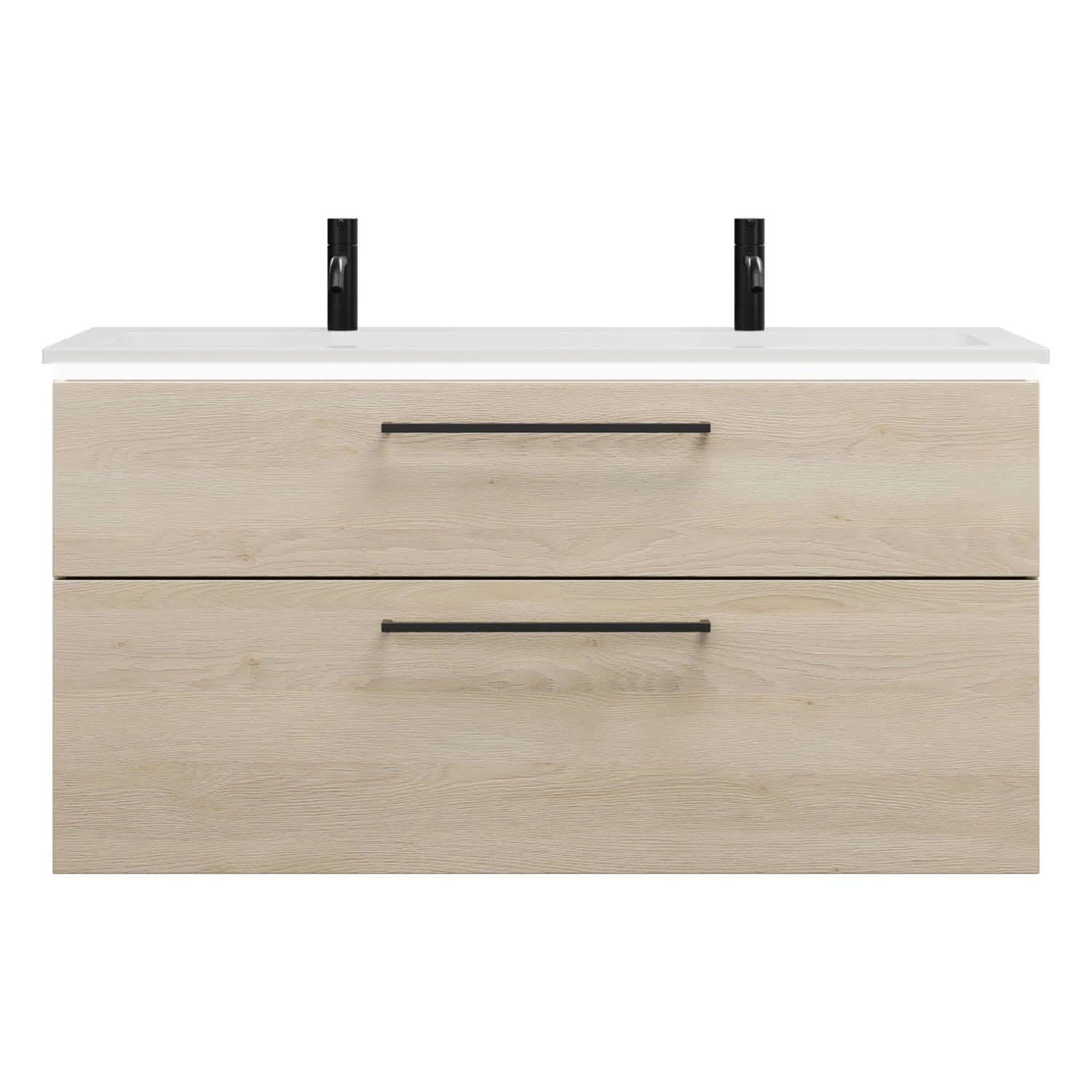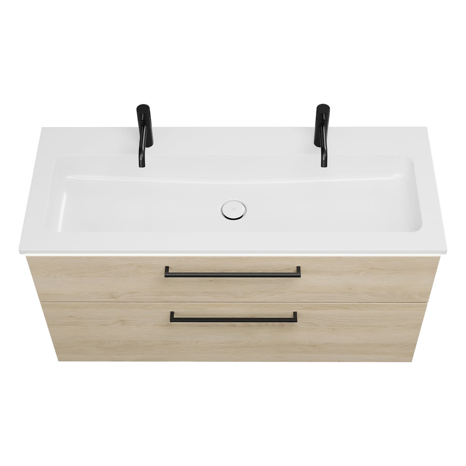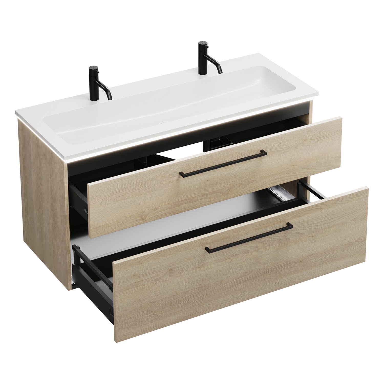 - 1 Schublade oben, 35 cm tief, mit Siphonausschnitt und Inneneinteilung