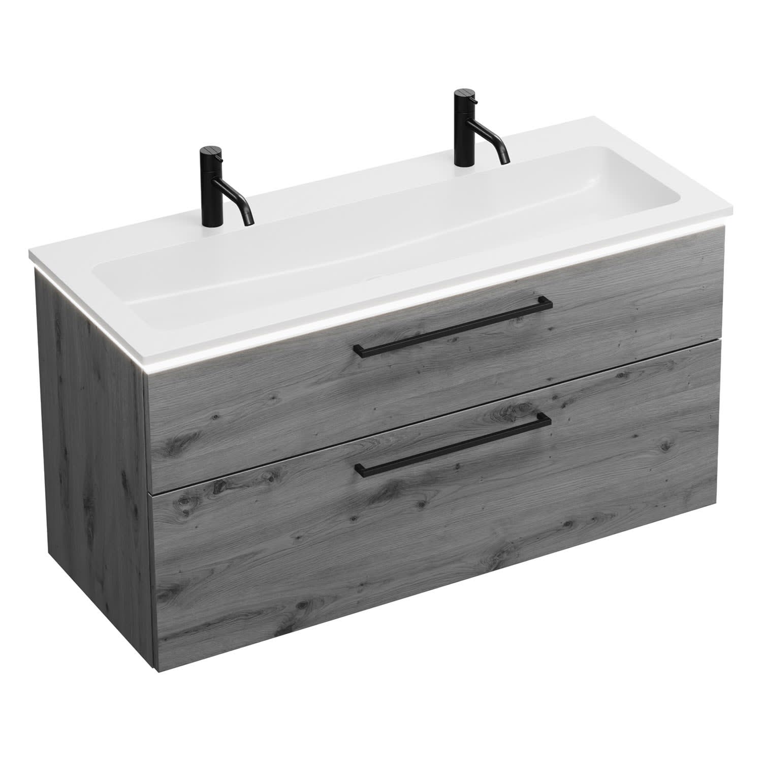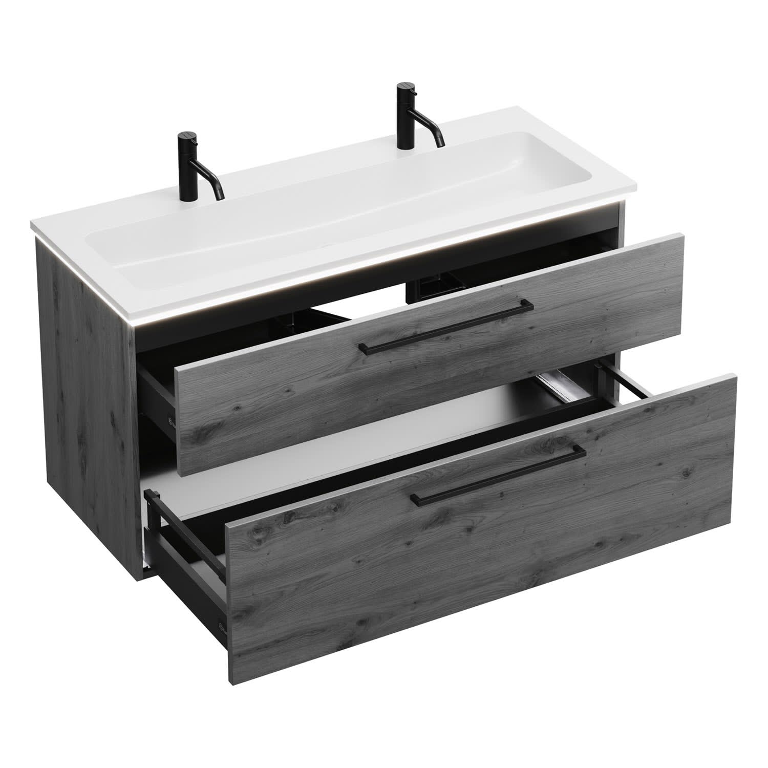 burgbad Eqio Waschtischkombination mit Mineralguss-Waschtisch und LED-Beleuchtung, 122 cm, mit Stangengriff G0234