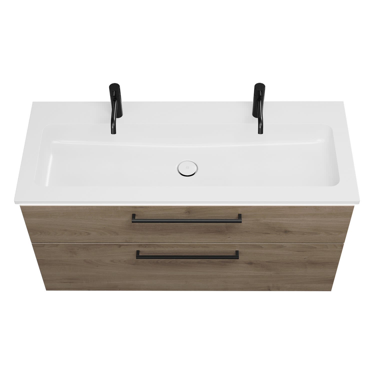 burgbad Eqio Waschtischkombination mit Mineralguss-Waschtisch und LED-Beleuchtung, 122 cm, mit Stangengriff G0234