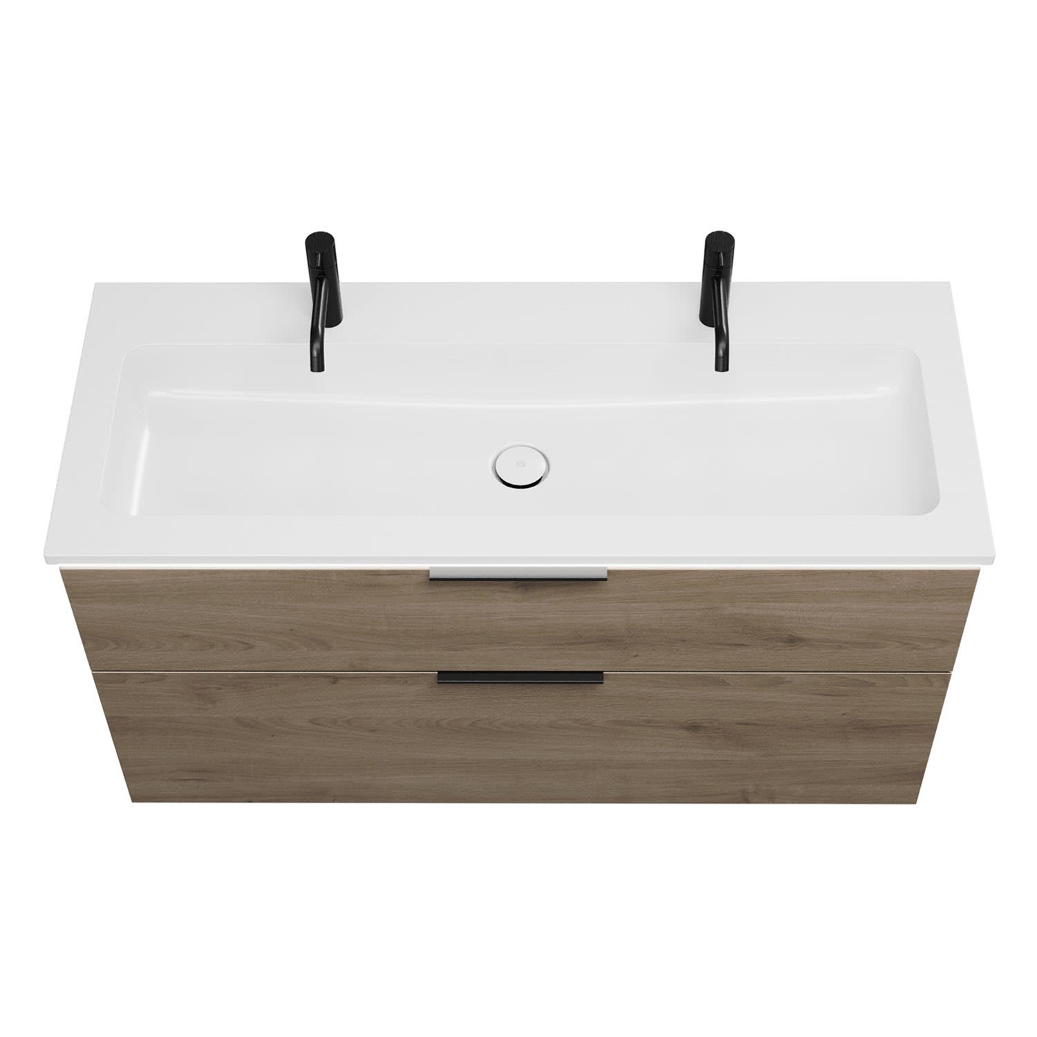 - 1 Schublade oben, 35 cm tief, mit Siphonausschnitt und Inneneinteilung