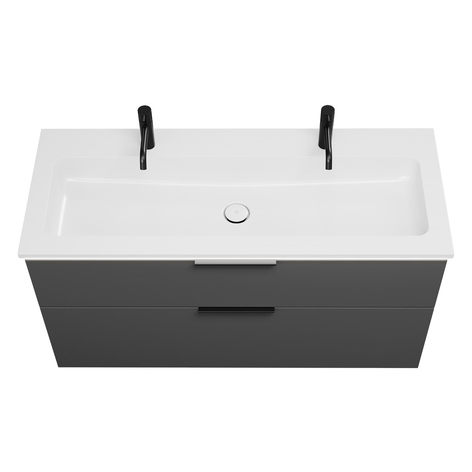 - 1 Schublade oben, 35 cm tief, mit Siphonausschnitt und Inneneinteilung