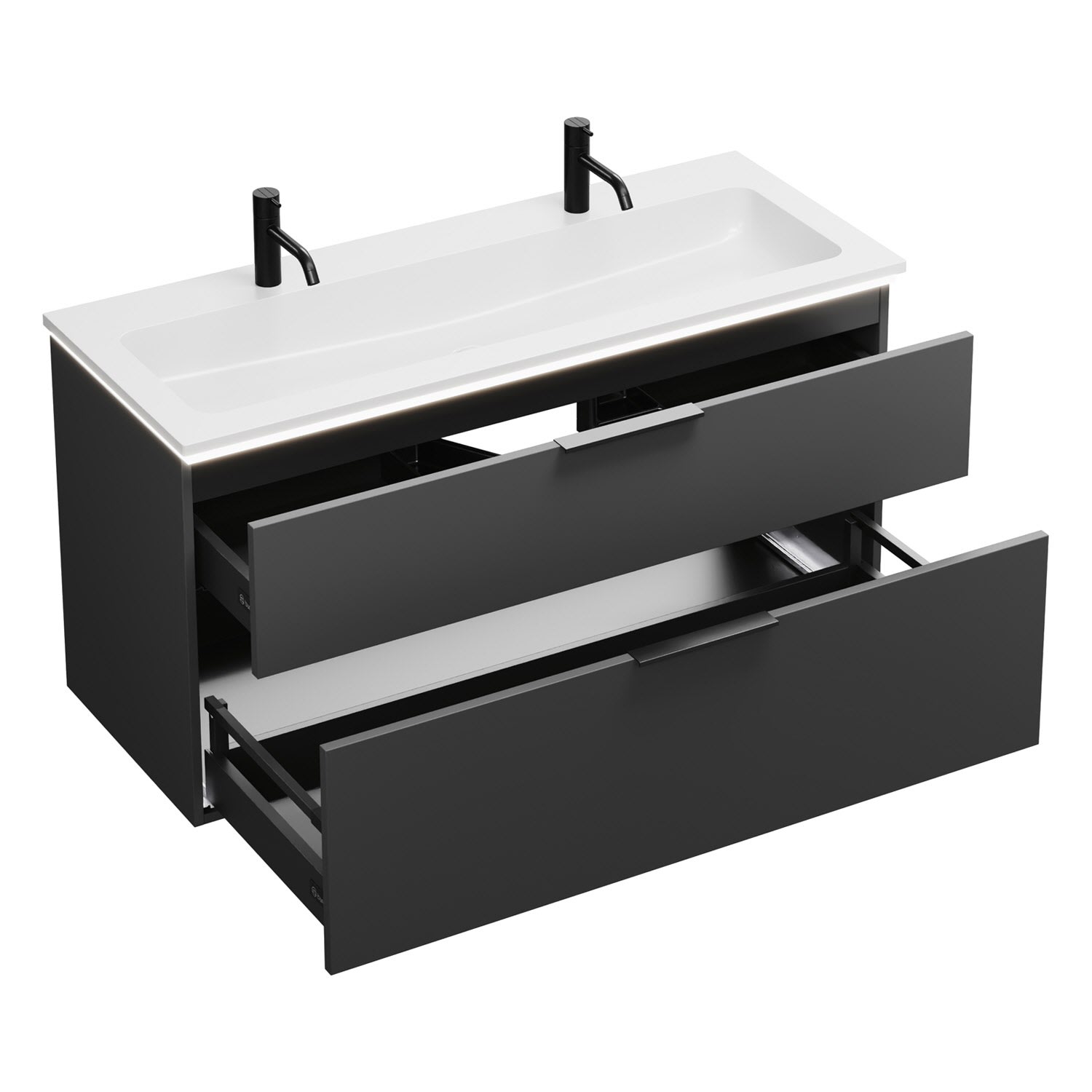 burgbad Eqio Waschtischkombination mit Mineralguss-Waschtisch und LED-Beleuchtung, 122 cm, mit Griff G0200