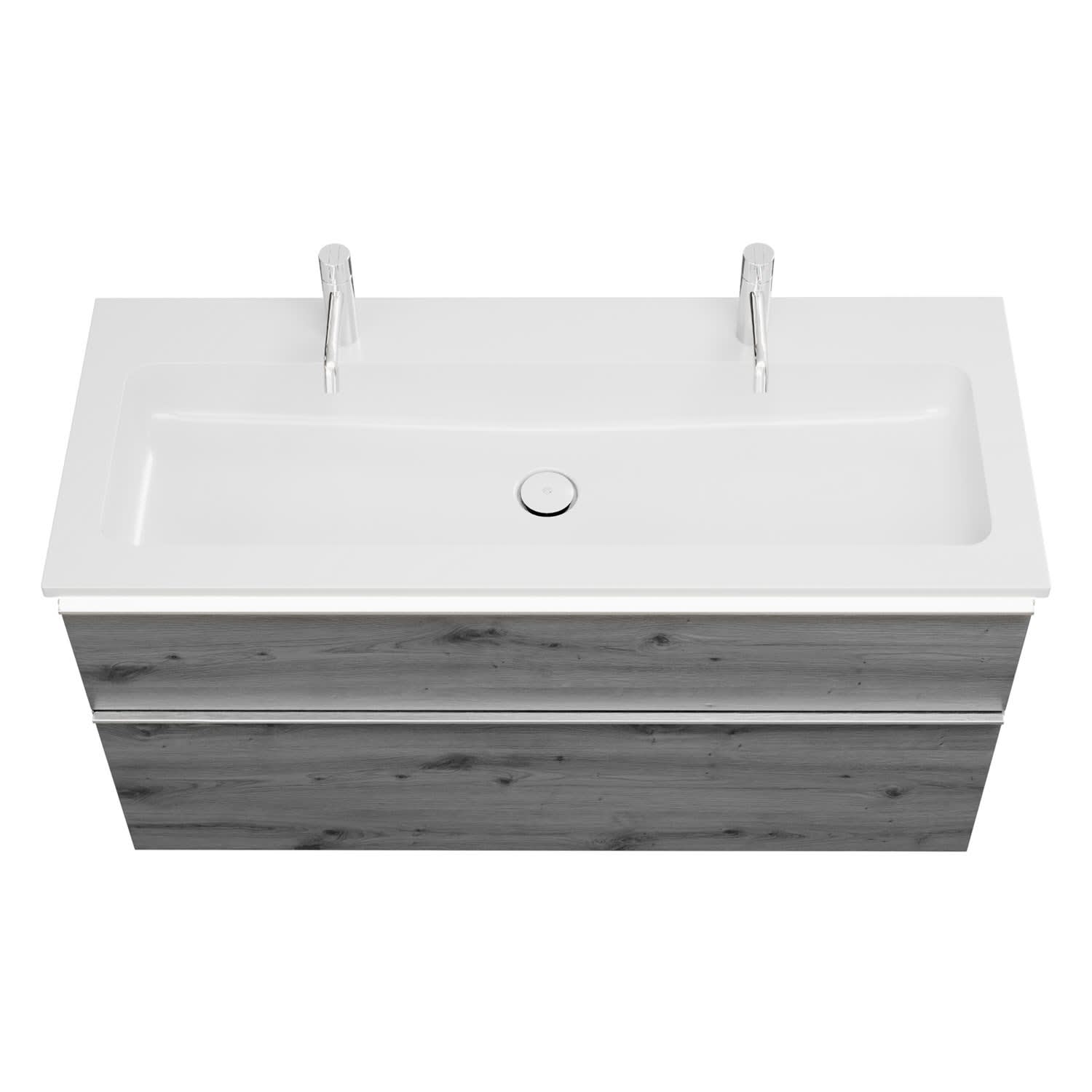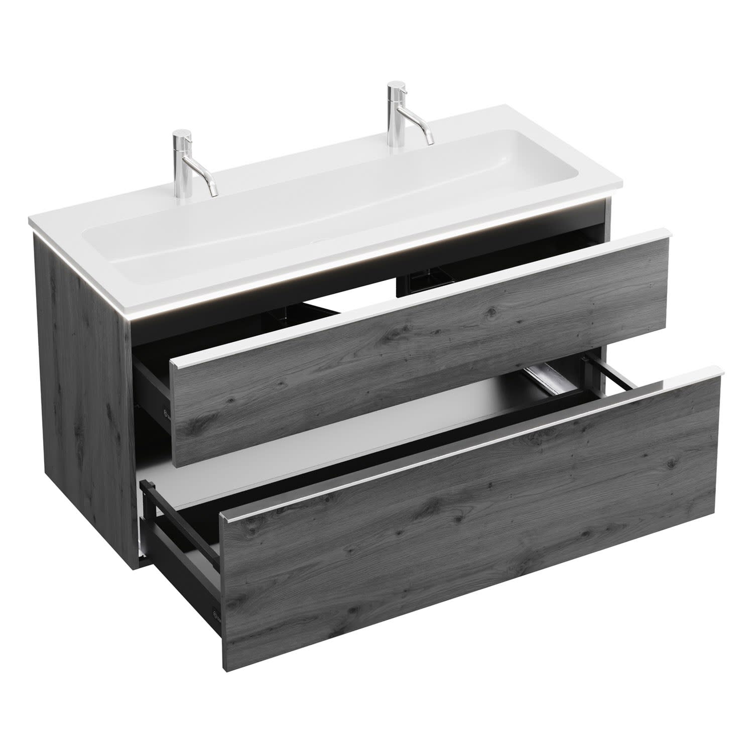 burgbad Eqio Waschtischkombination mit Mineralguss-Waschtisch und LED-Beleuchtung, 122 cm, mit Griffleiste G0251
