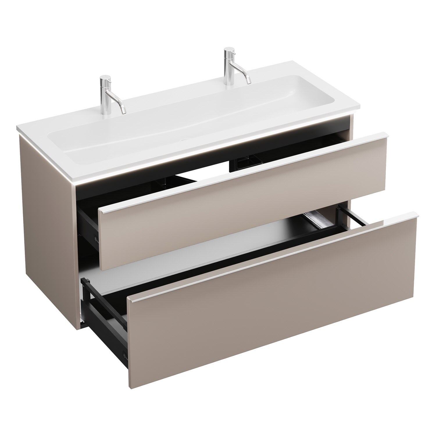 burgbad Eqio Waschtischkombination mit Mineralguss-Waschtisch und LED-Beleuchtung, 122 cm, mit Griffleiste G0251