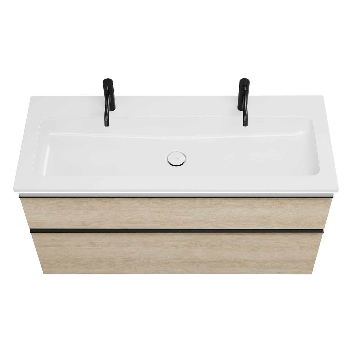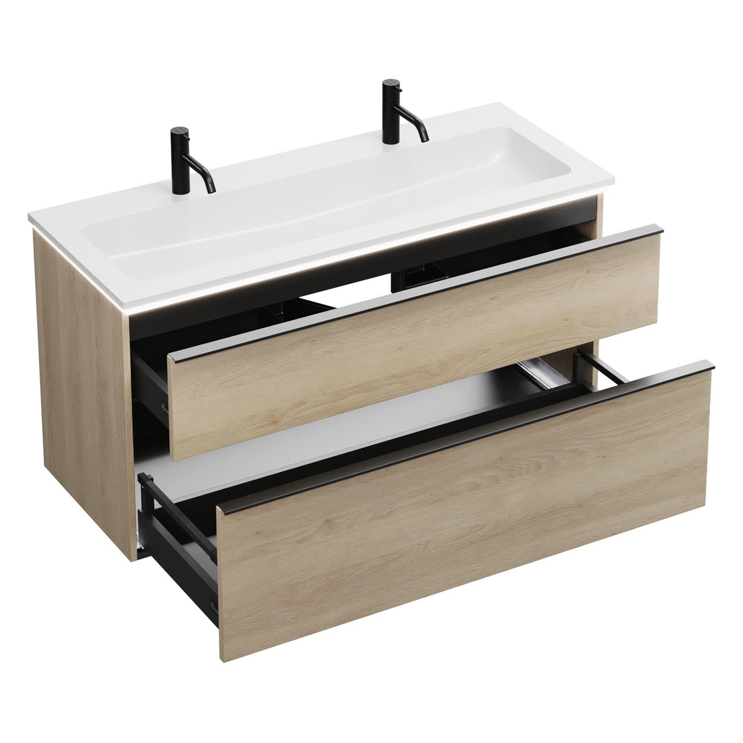 burgbad Eqio Waschtischkombination mit Mineralguss-Waschtisch und LED-Beleuchtung, 122 cm, mit Griffleiste G0252