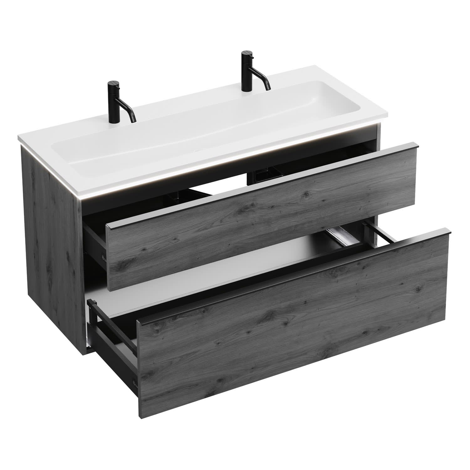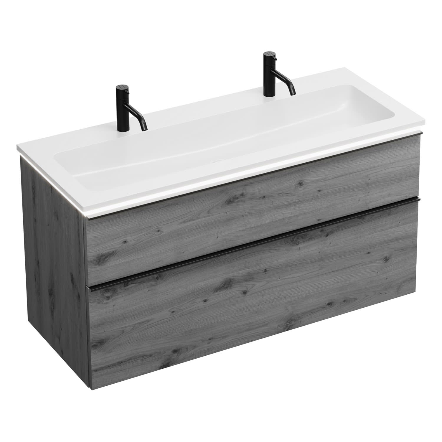 burgbad Eqio Waschtischkombination mit Mineralguss-Waschtisch und LED-Beleuchtung, 122 cm, mit Griffleiste G0252