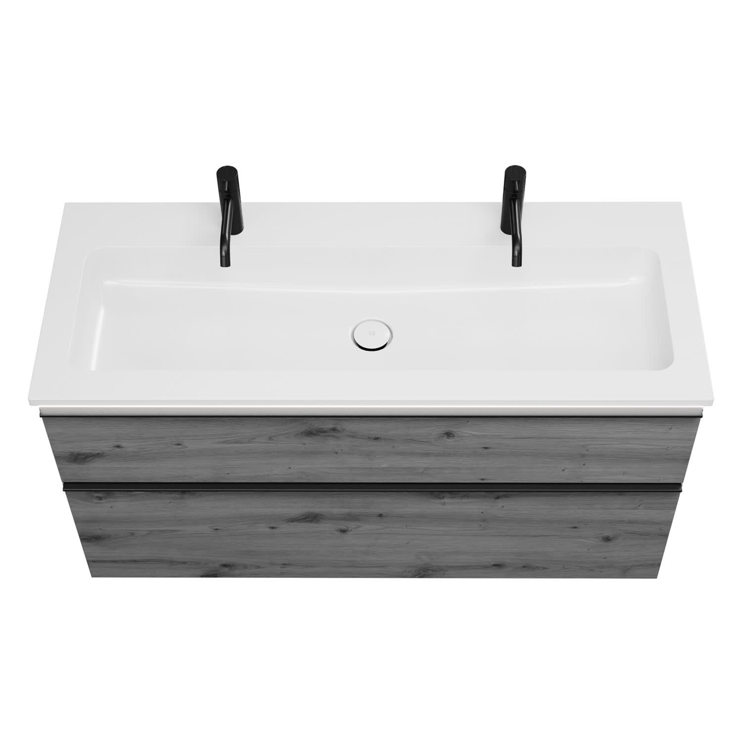 - 1 Schublade oben, 35 cm tief, mit Siphonausschnitt und Inneneinteilung