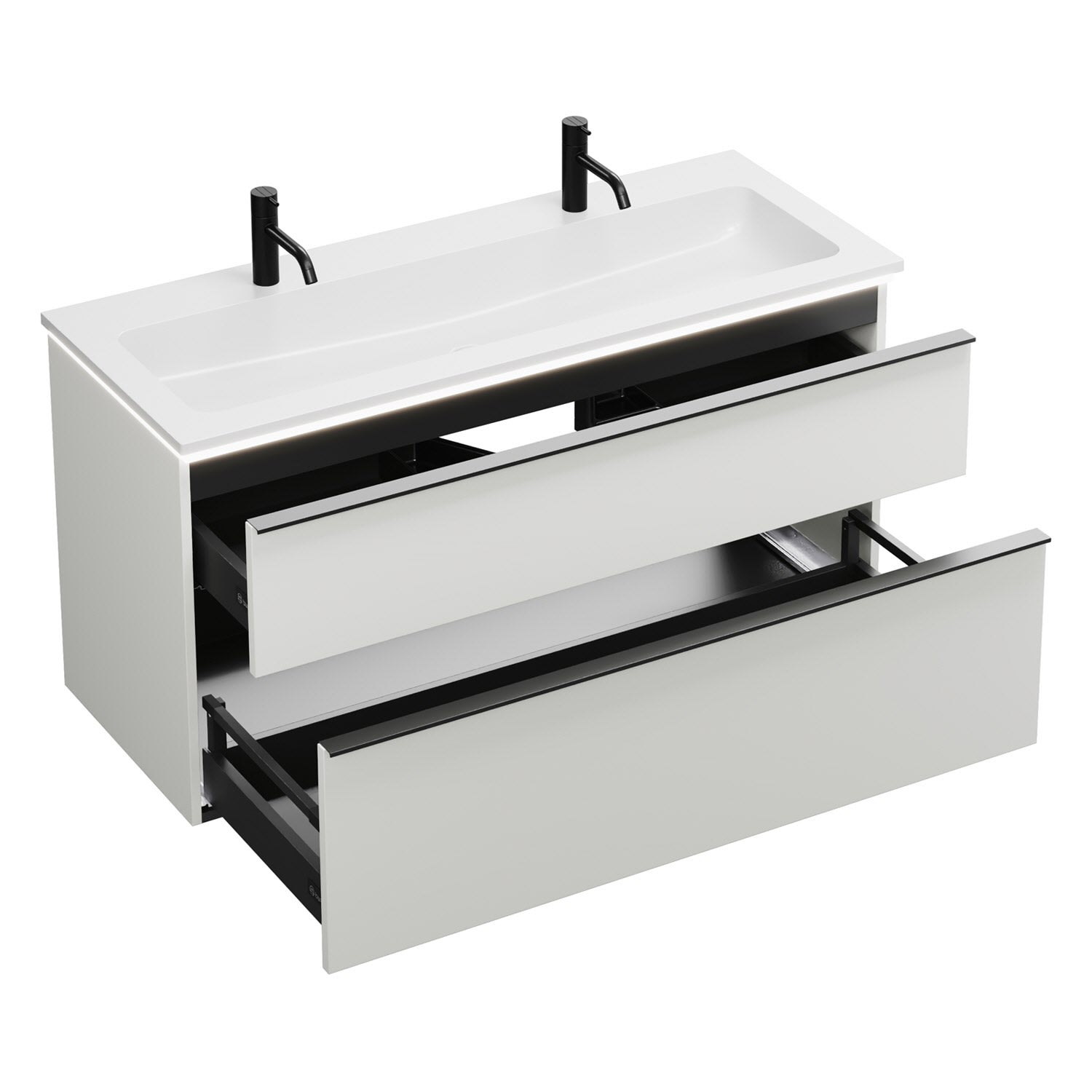 burgbad Eqio Waschtischkombination mit Mineralguss-Waschtisch und LED-Beleuchtung, 122 cm, mit Griffleiste G0252