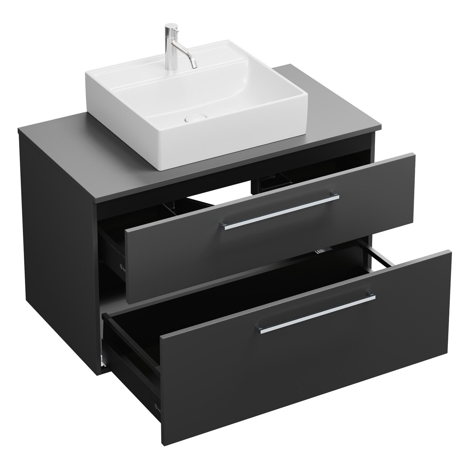 - 1 Schublade oben, 35 cm tief, mit Siphonausschnitt und Inneneinteilung