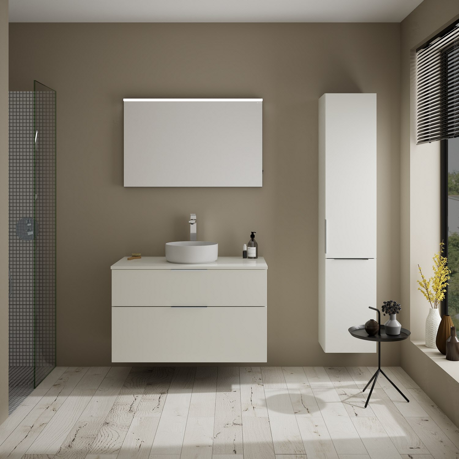 Aufsatzwaschtische müssen immer, mindestens 3 cm von den Außenkanten der Konsolenplatte entfernt sein.