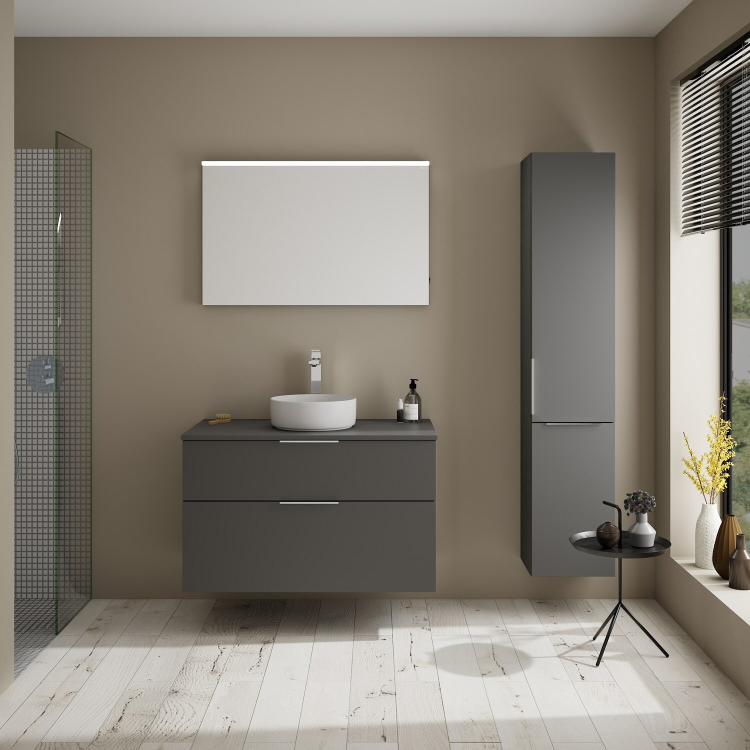 - Boden/Rückwand: Anthrazitgrau