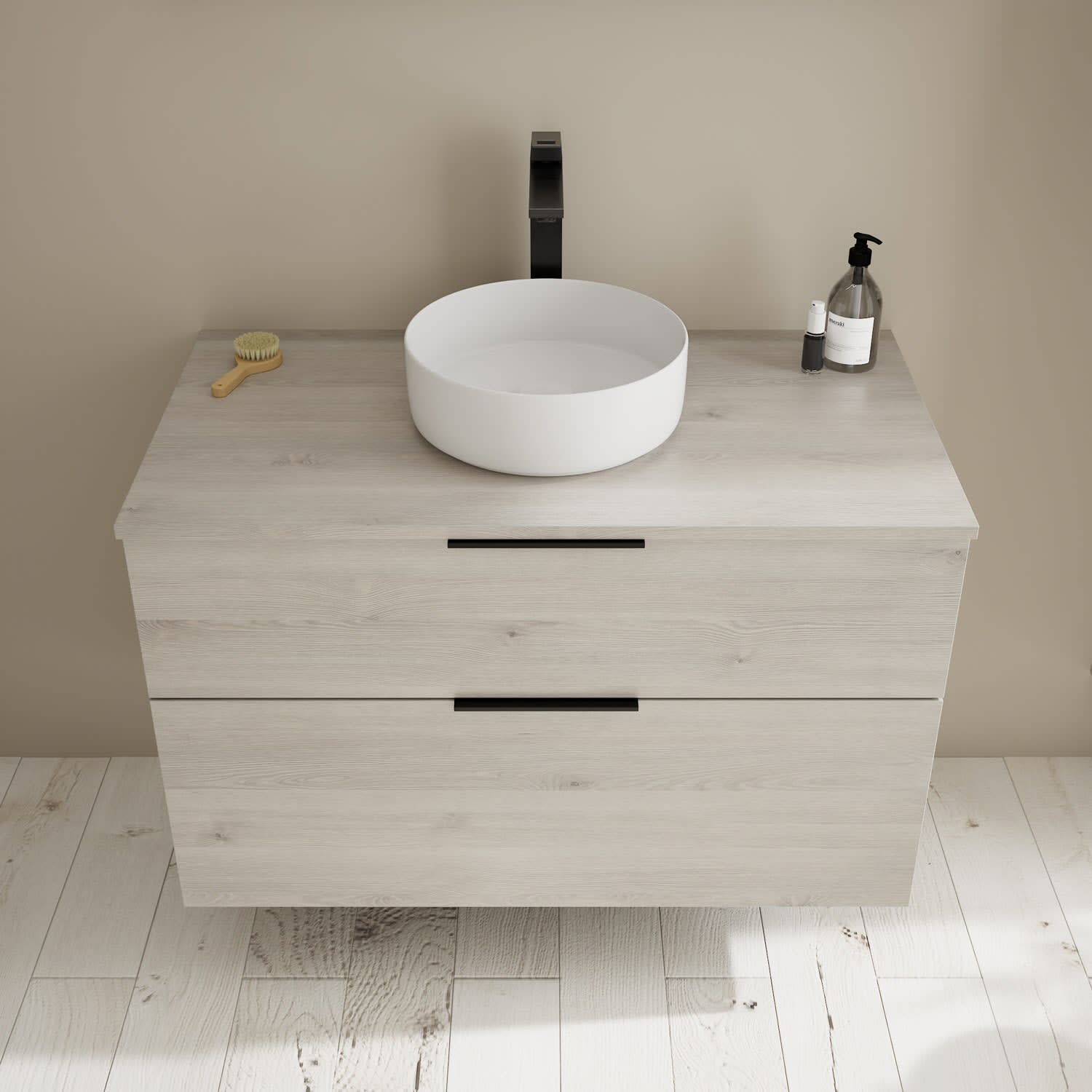 Aufsatzwaschtische müssen immer, mindestens 3 cm von den Außenkanten der Konsolenplatte entfernt sein.