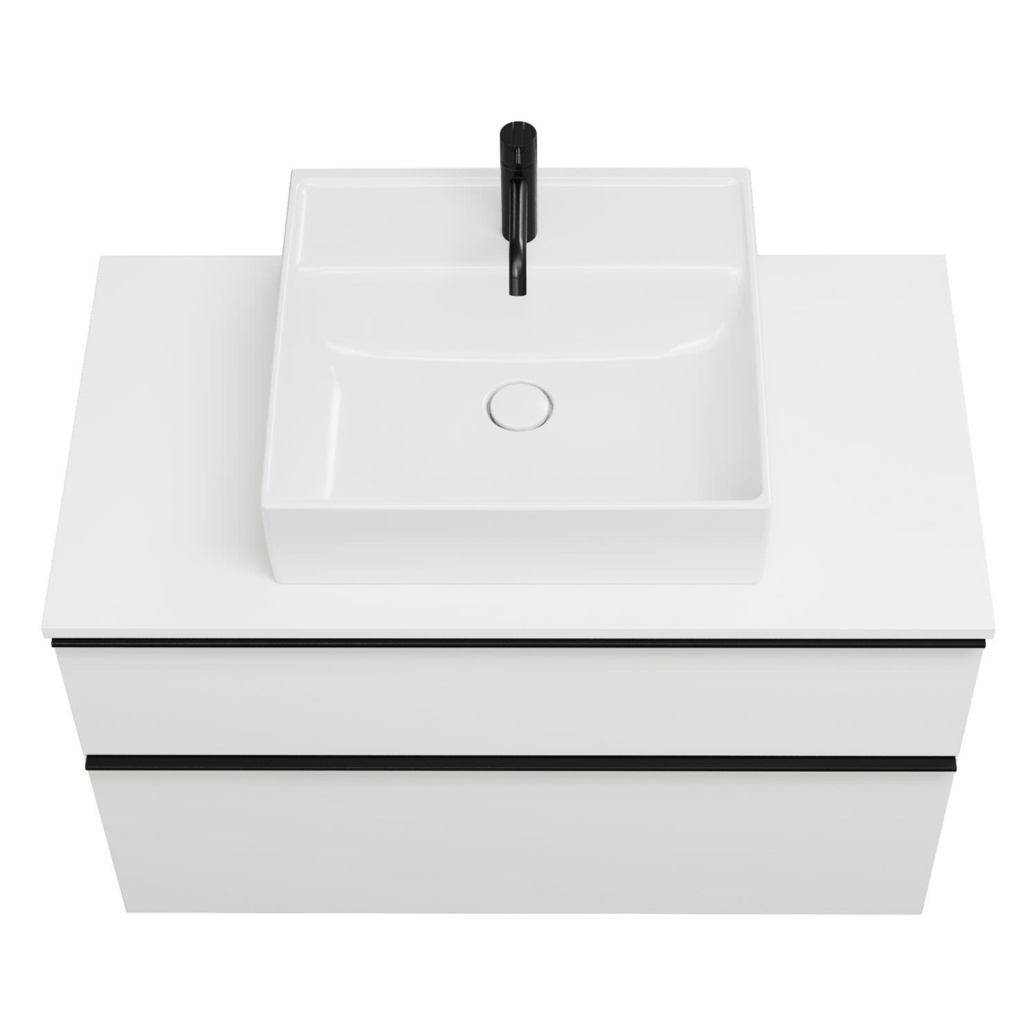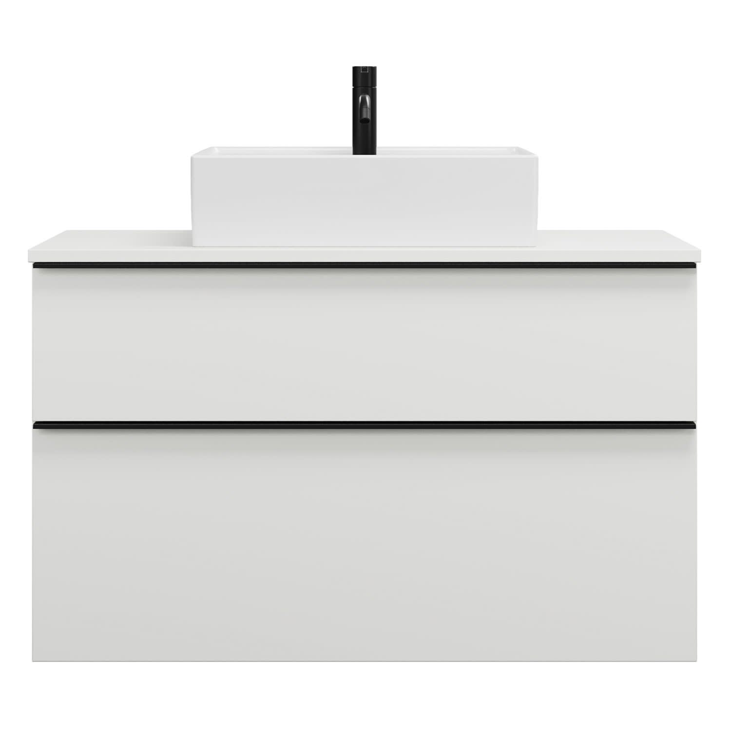 - 1 Schublade oben, 35 cm tief, mit Siphonausschnitt und Inneneinteilung
