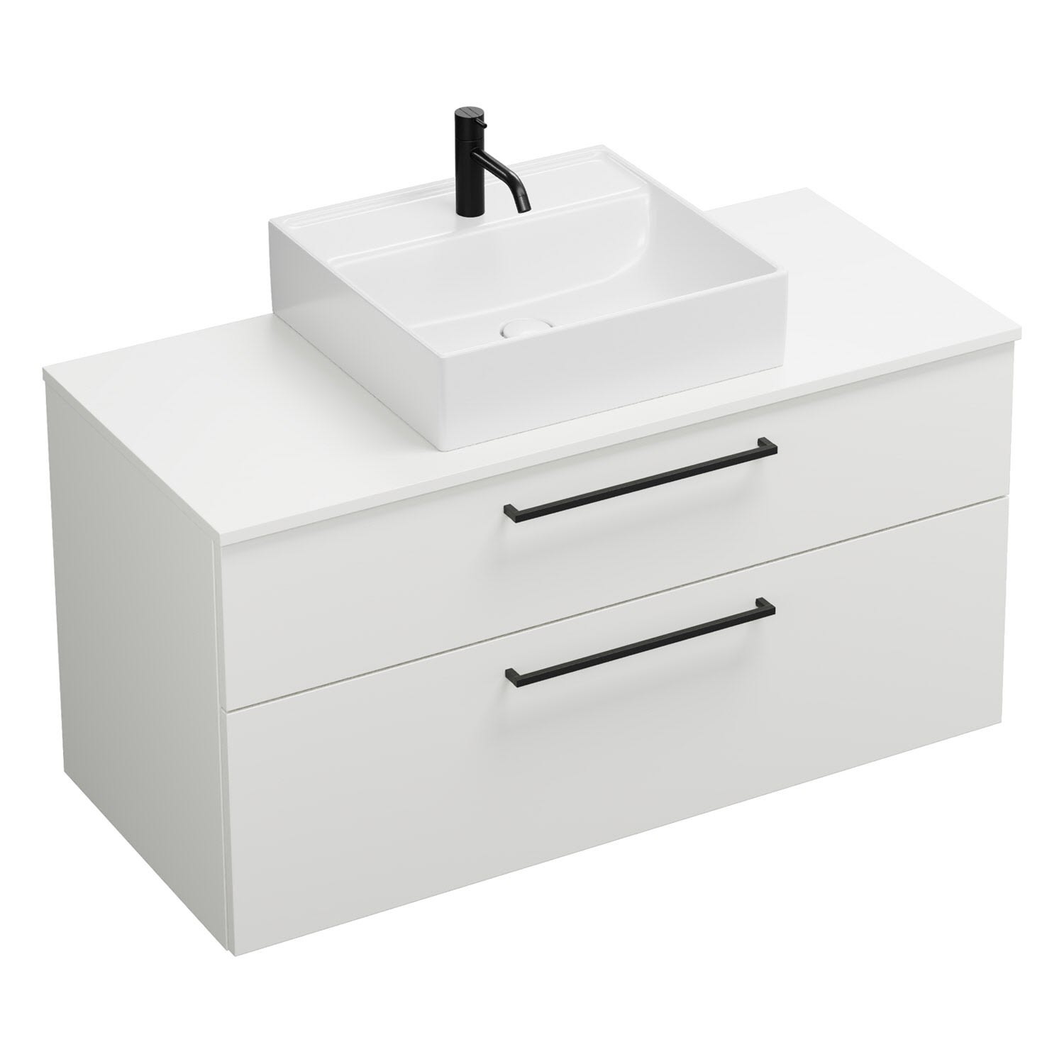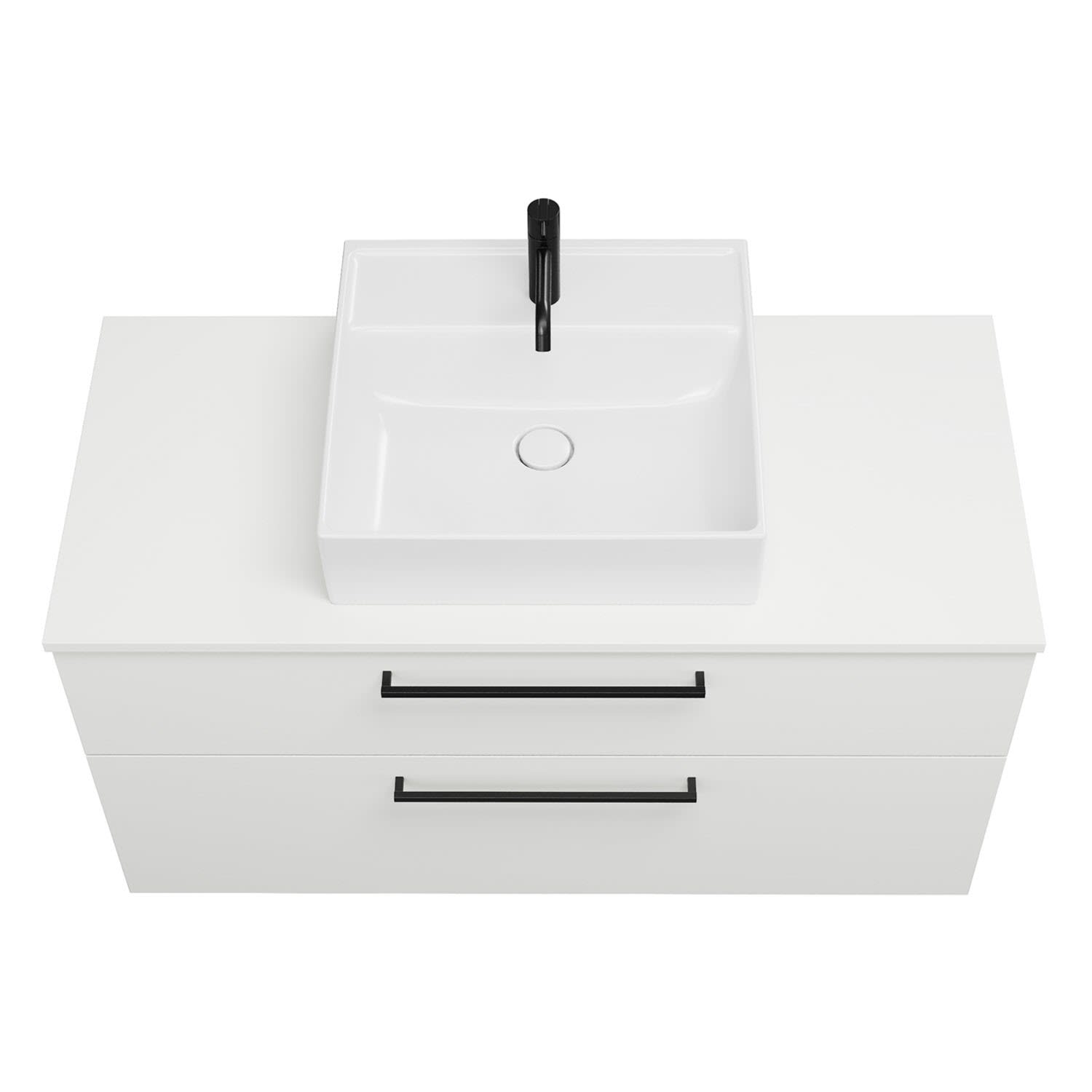 - 1 Schublade oben, 35 cm tief, mit Siphonausschnitt und Inneneinteilung