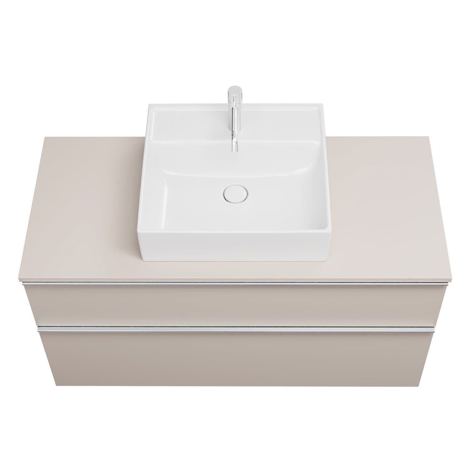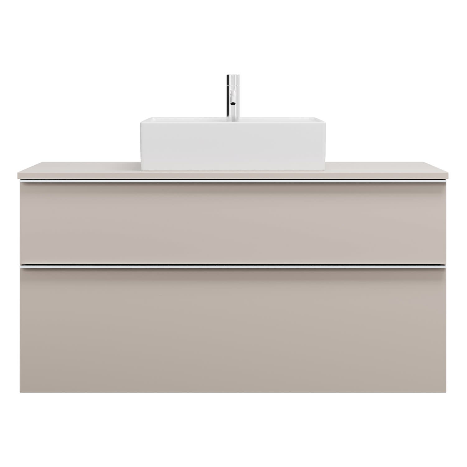- 1 Schublade oben, 35 cm tief, mit Siphonausschnitt und Inneneinteilung