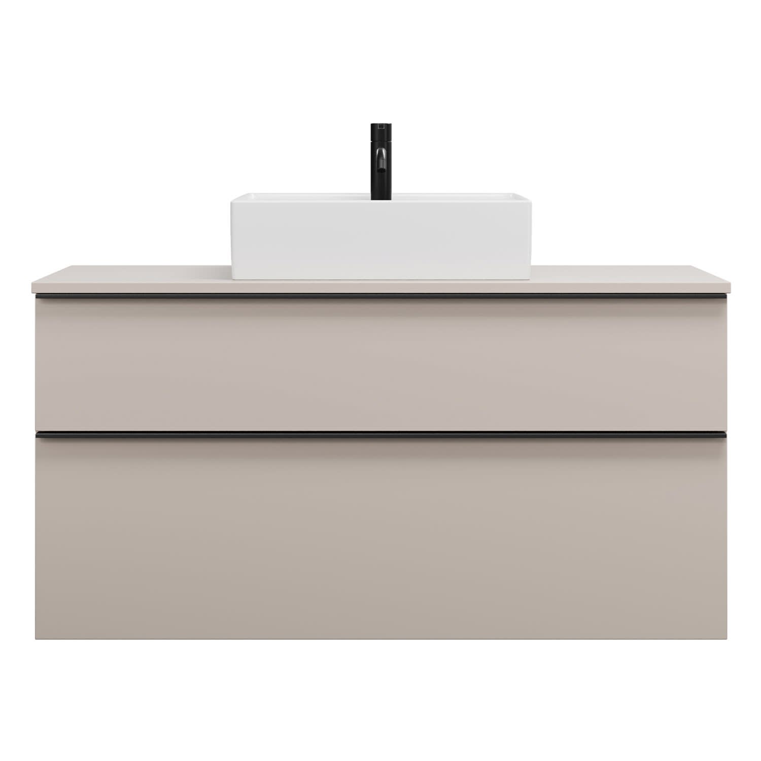 - 1 Schublade oben, 35 cm tief, mit Siphonausschnitt und Inneneinteilung