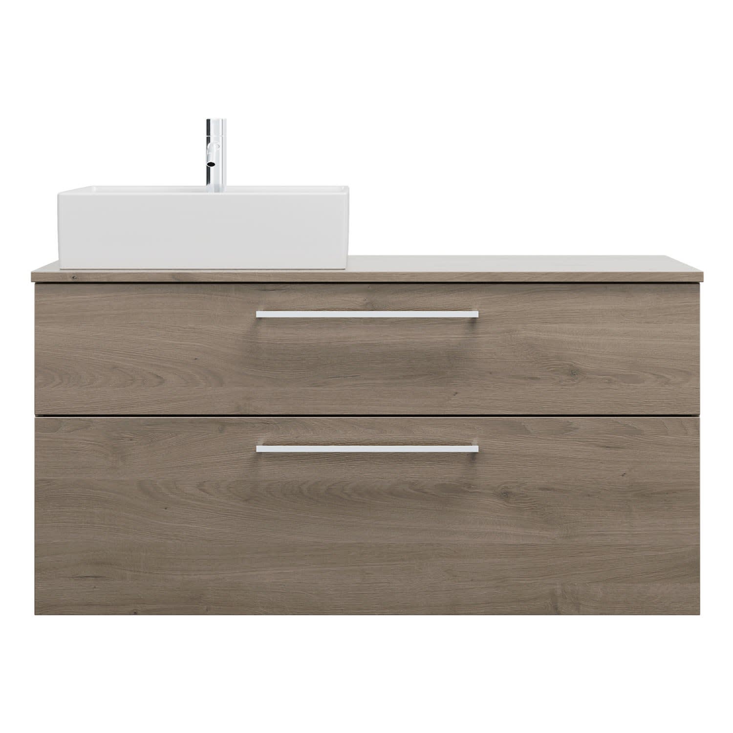 - 1 Schublade oben, 35 cm tief, mit Siphonausschnitt und Inneneinteilung