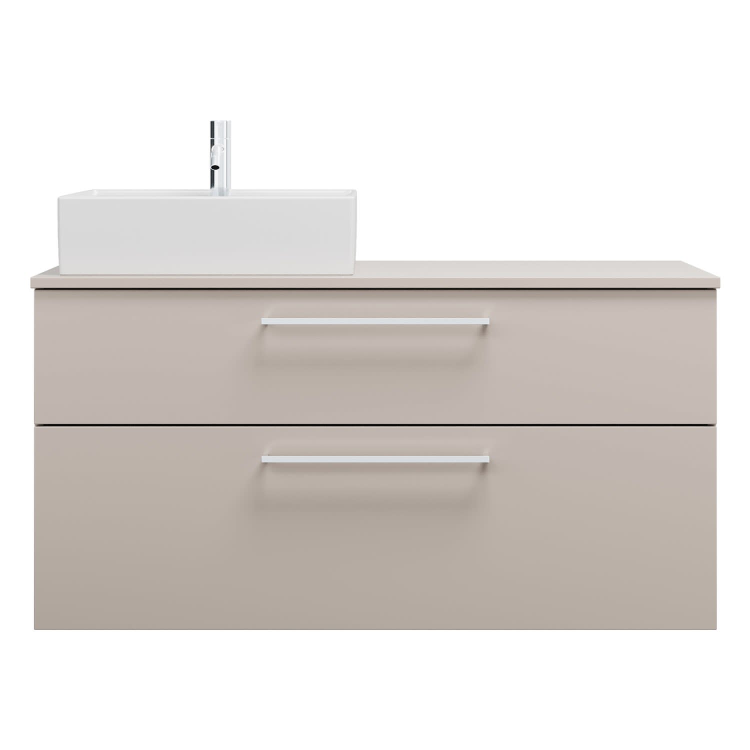 - 1 Schublade oben, 35 cm tief, mit Siphonausschnitt und Inneneinteilung