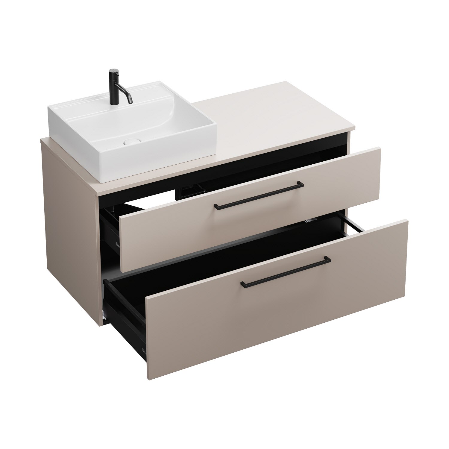 - 1 Schublade oben, 35 cm tief, mit Siphonausschnitt und Inneneinteilung