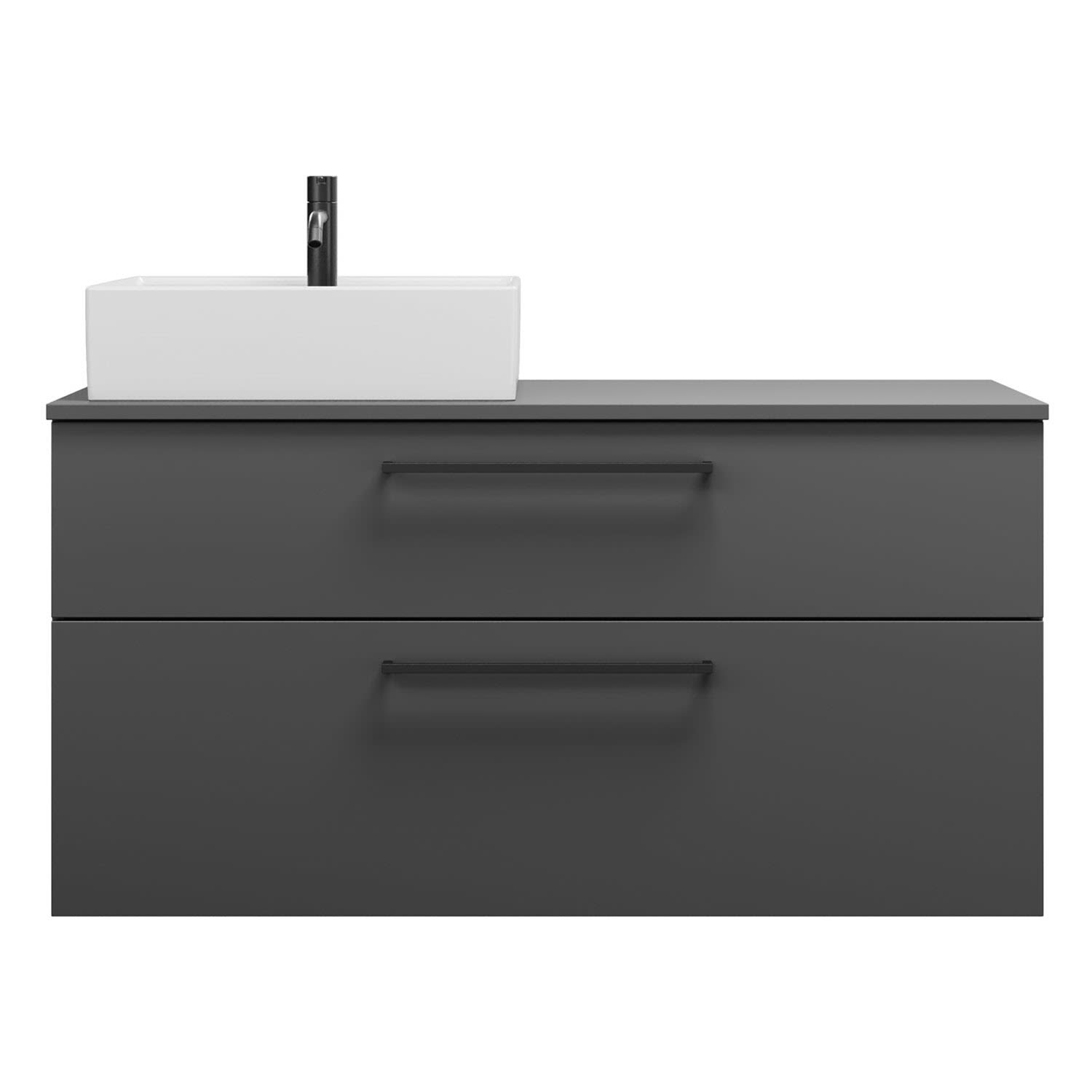 - 1 Schublade oben, 35 cm tief, mit Siphonausschnitt und Inneneinteilung