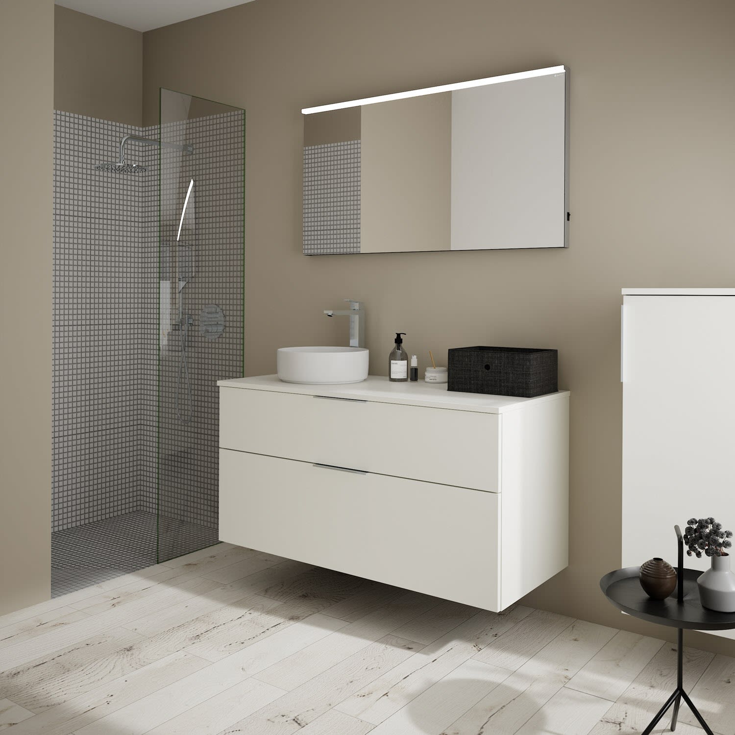 burgbad Eqio Waschtischunterschrank mit Konsolenplatte 120 cm, links, mit Griff G0146