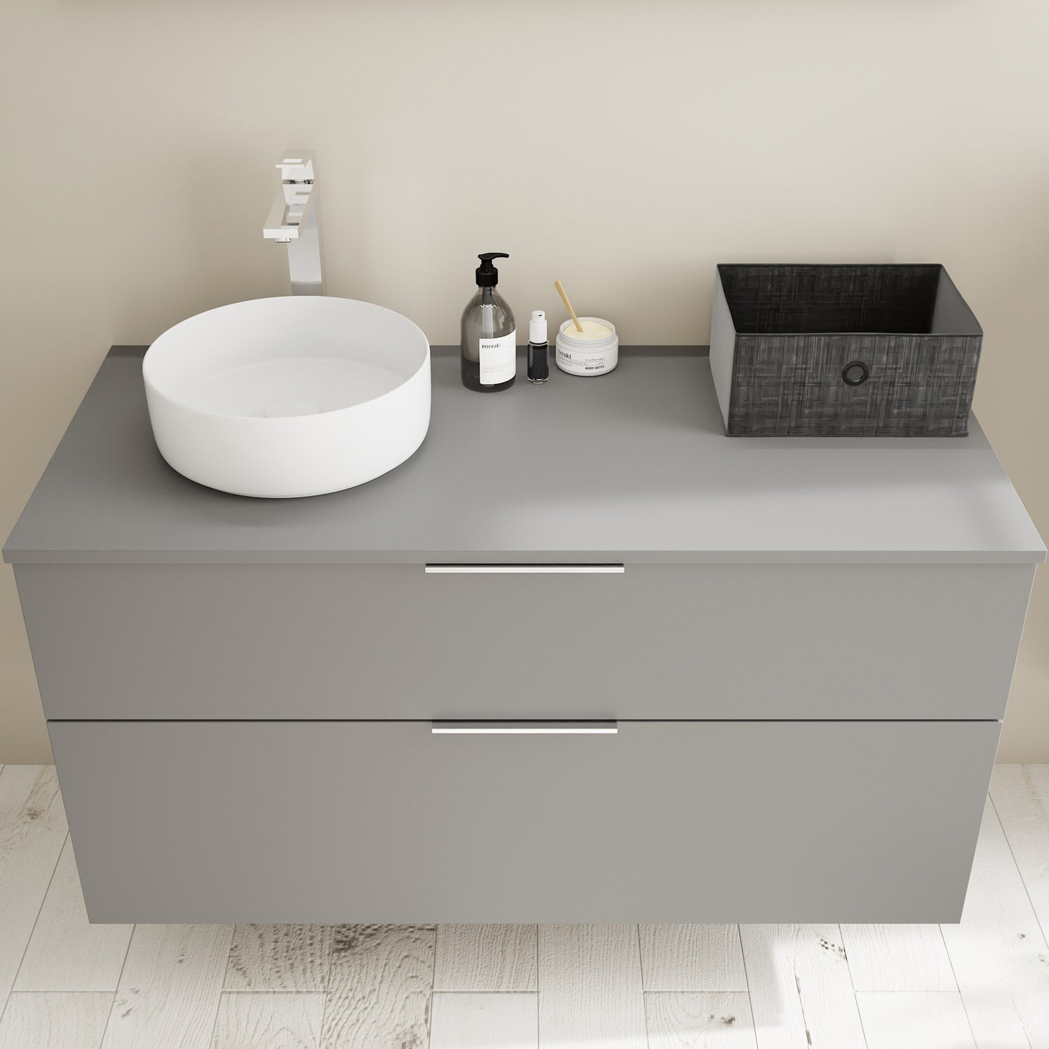 Aufsatzwaschtische müssen immer, mindestens 3 cm von den Außenkanten der Konsolenplatte entfernt sein.