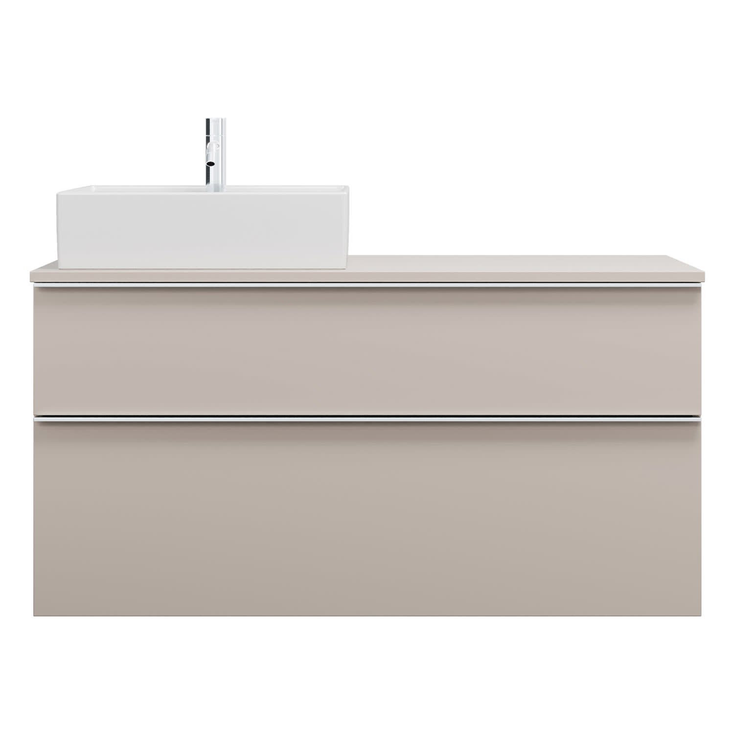 - 1 Schublade oben, 35 cm tief, mit Siphonausschnitt und Inneneinteilung