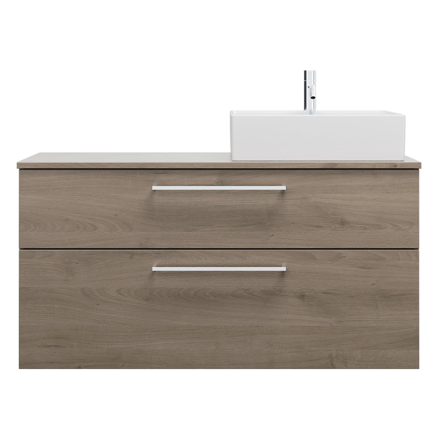 - 1 Schublade oben, 35 cm tief, mit Siphonausschnitt und Inneneinteilung