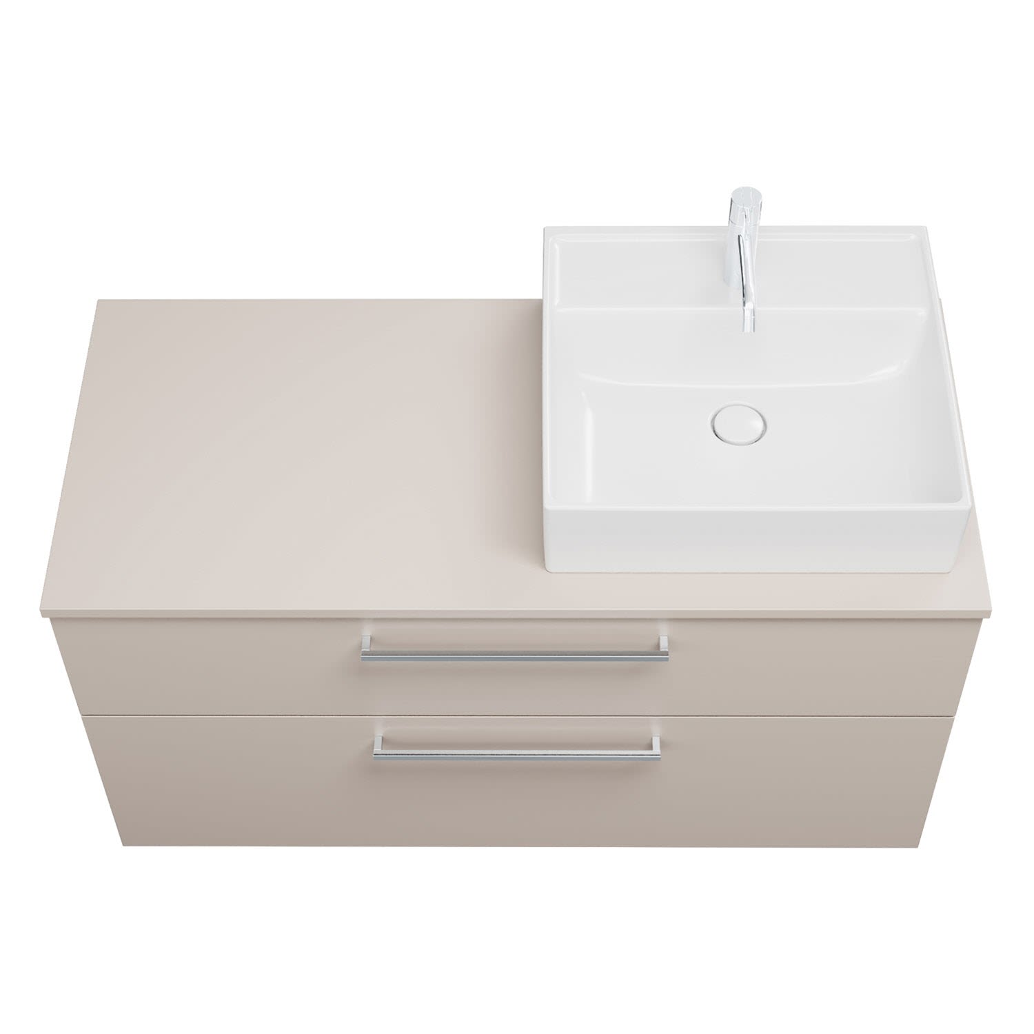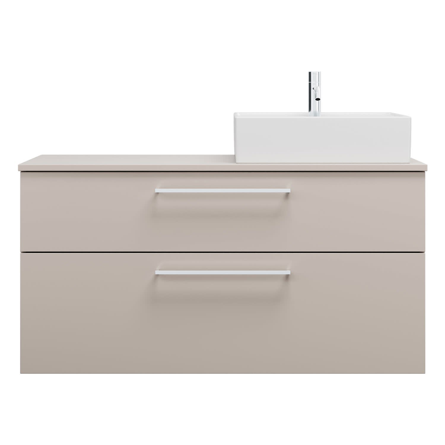 - 1 Schublade oben, 35 cm tief, mit Siphonausschnitt und Inneneinteilung