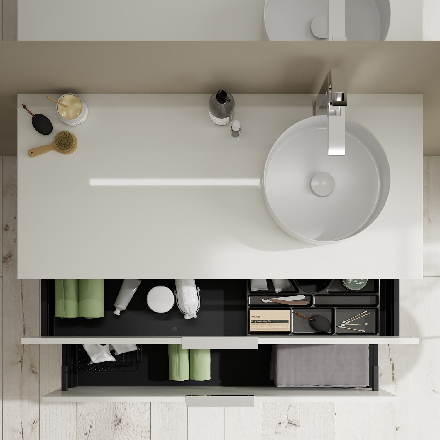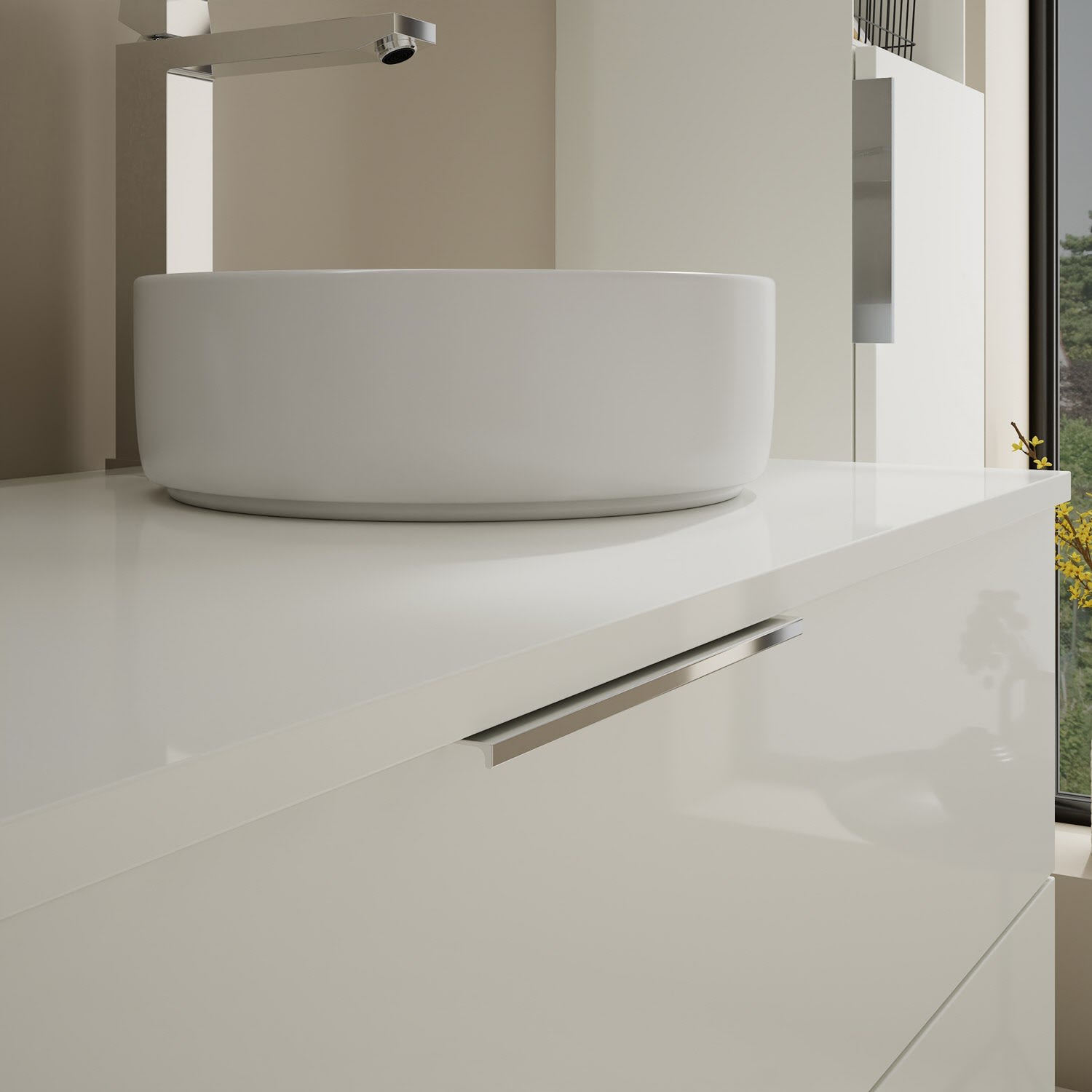 Aufsatzwaschtische müssen immer, mindestens 3 cm von den Außenkanten der Konsolenplatte entfernt sein.