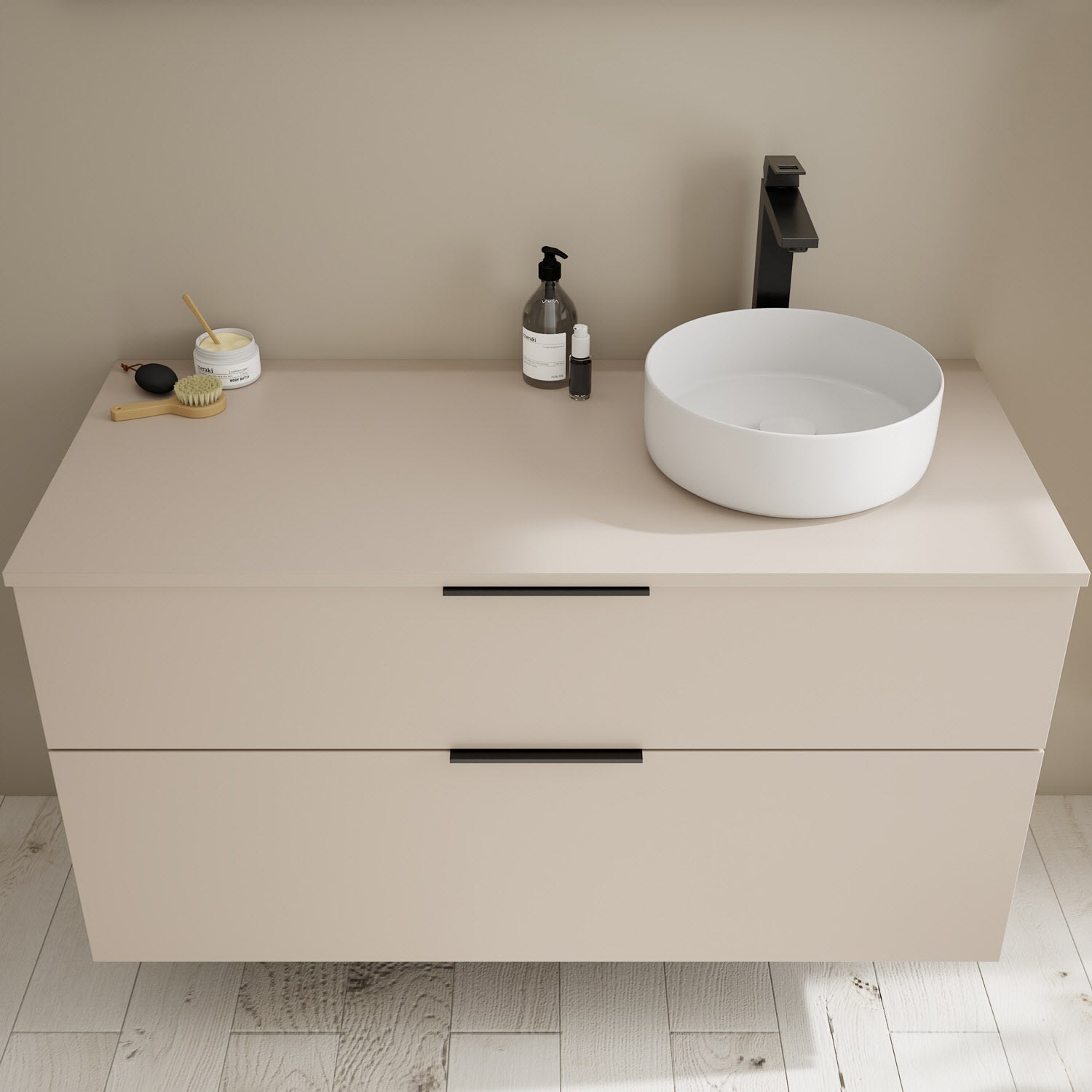 Aufsatzwaschtische müssen immer, mindestens 3 cm von den Außenkanten der Konsolenplatte entfernt sein.