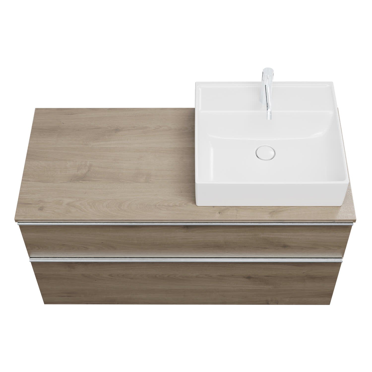 - 1 Schublade oben, 35 cm tief, mit Siphonausschnitt und Inneneinteilung